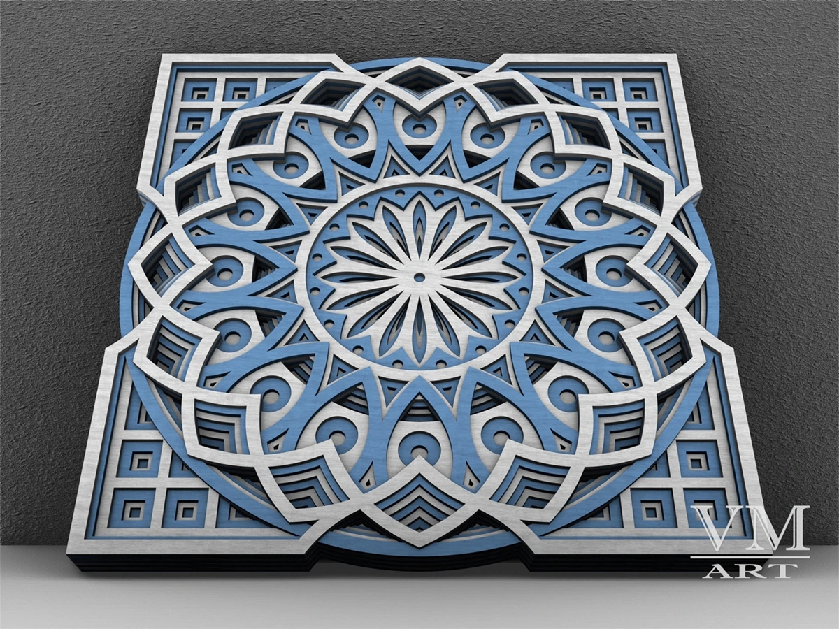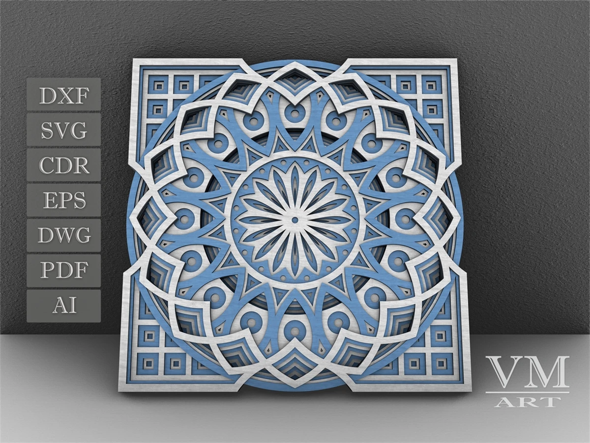 M03 - Layered Mandala SVG File, 3D Flower Mandala, Cut file, Laser cut file Mandala DXF file, Layered Mandala SVG for Cricut