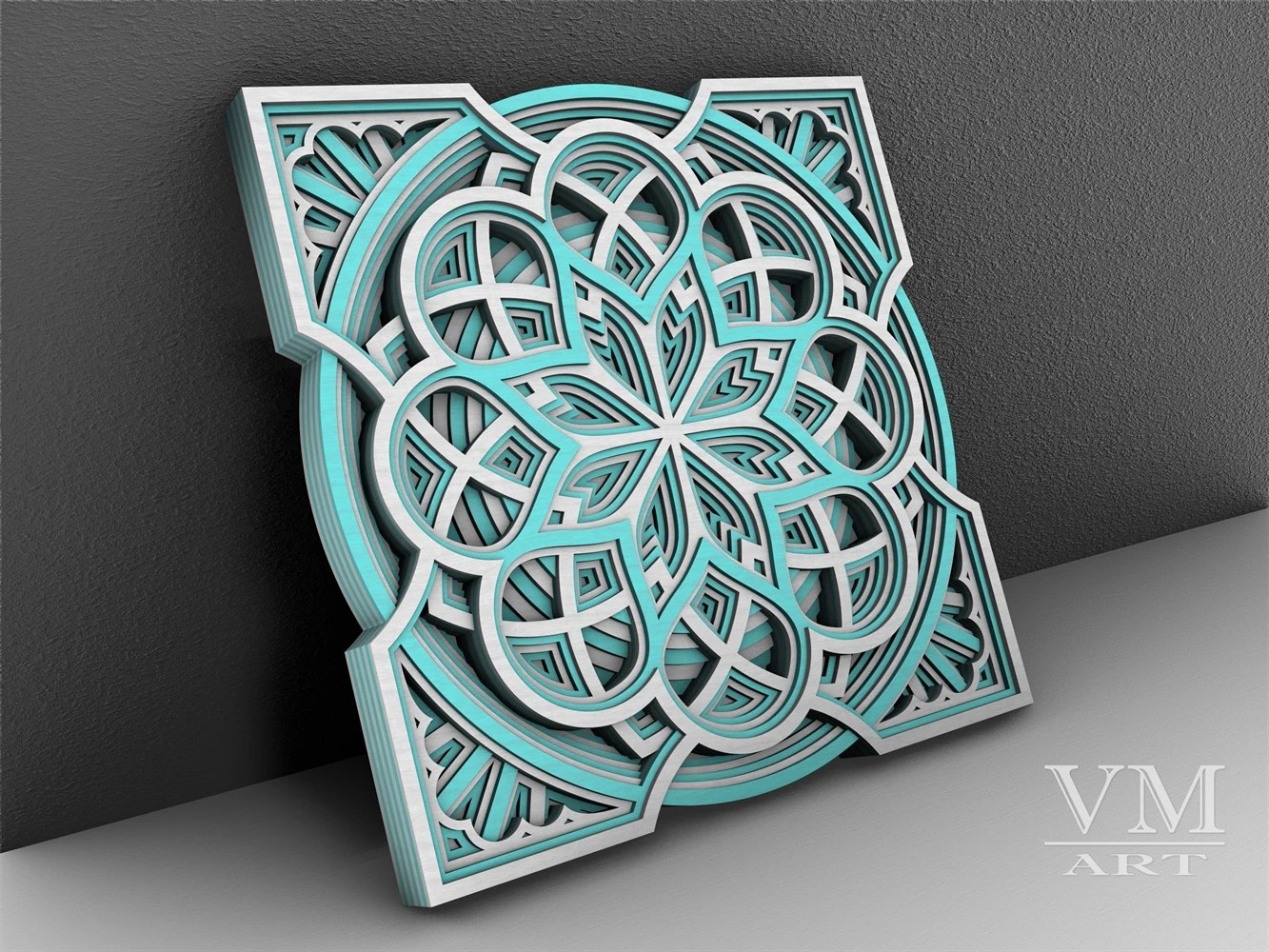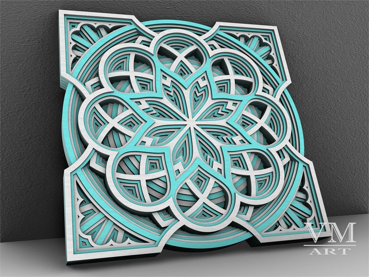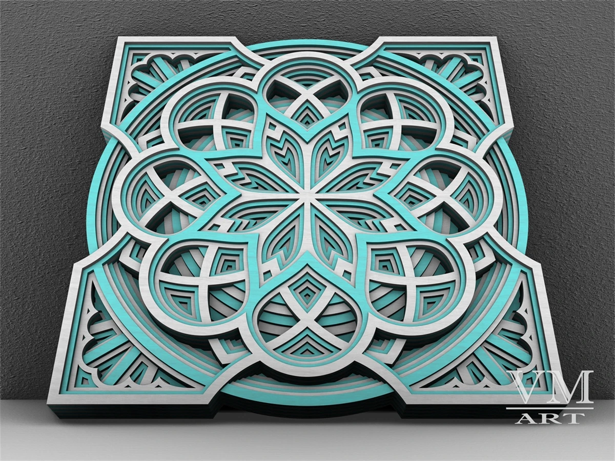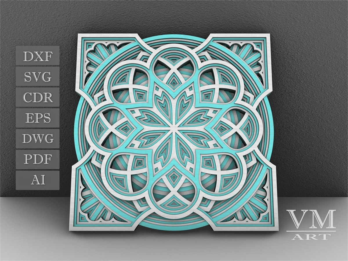 M04 - Layered Mandala SVG File, 3D Flower Mandala, Cut file, Laser cut file Mandala DXF file, Layered Mandala SVG for Cricut
