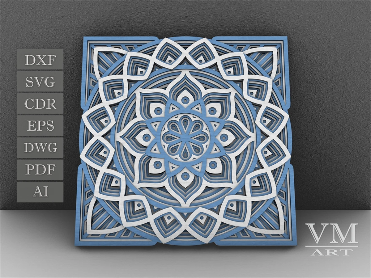 M07 - Layered Mandala SVG File, 3D Flower Mandala, Cut file, Laser cut file Mandala DXF file, Layered Mandala SVG for Cricut