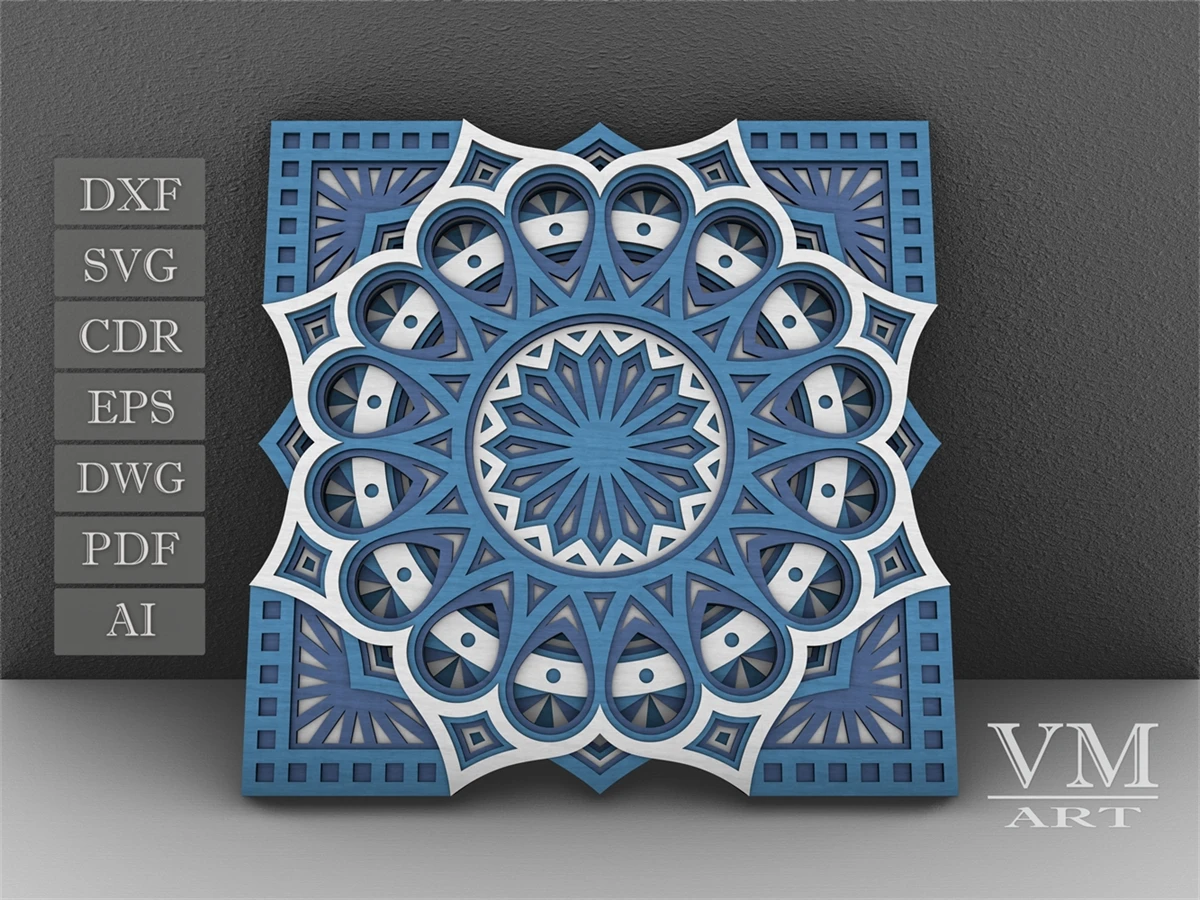 M11 - Layered Mandala SVG File, 3D Flower Mandala, Cut file, Laser cut file Mandala DXF file, Layered Mandala SVG for Cricut