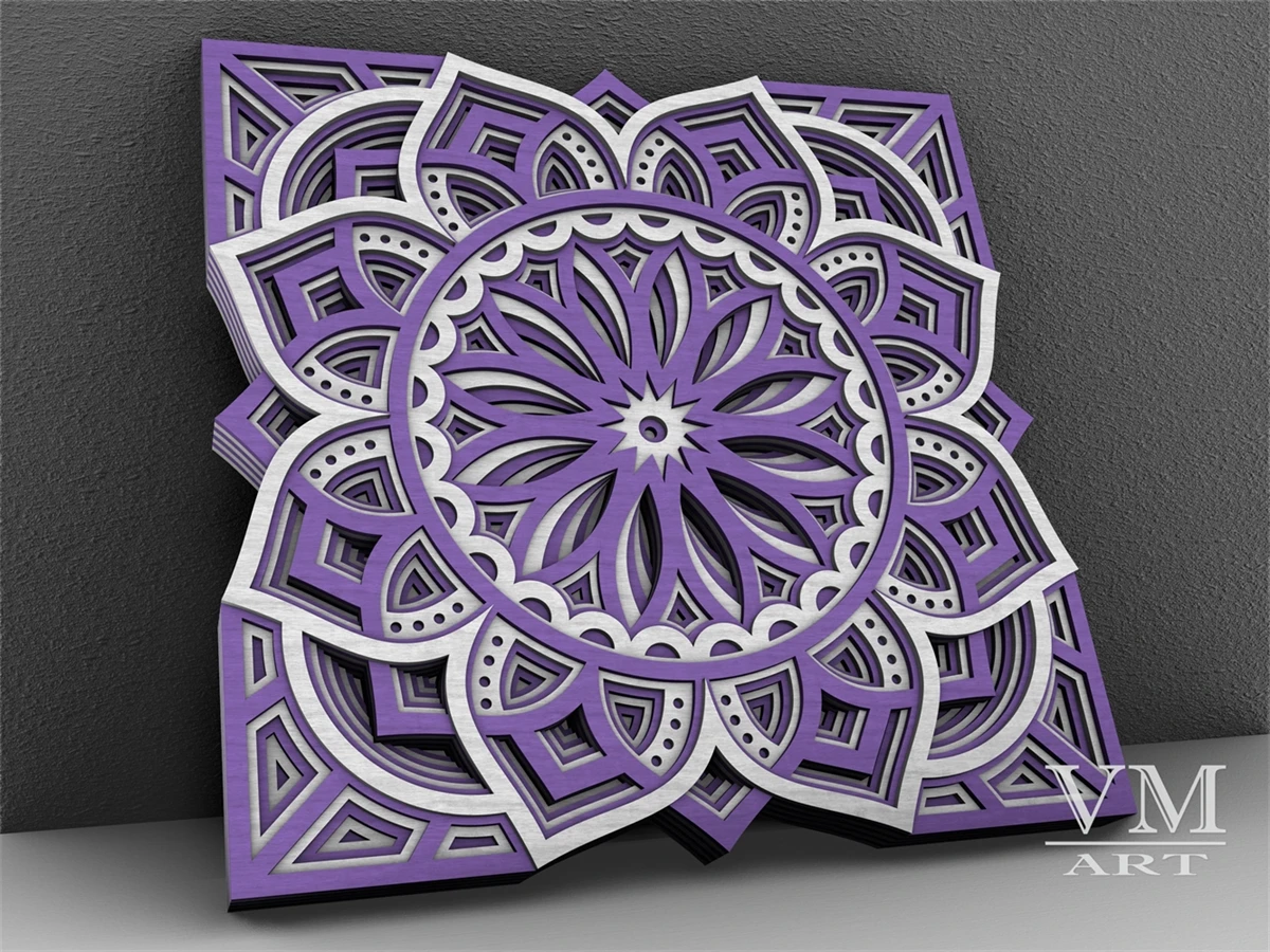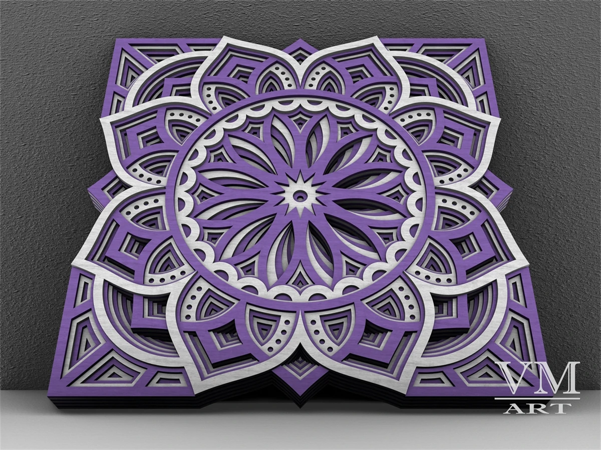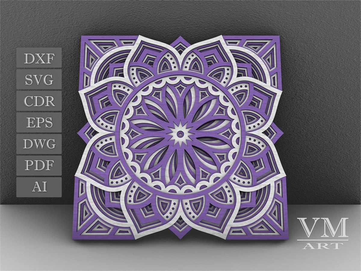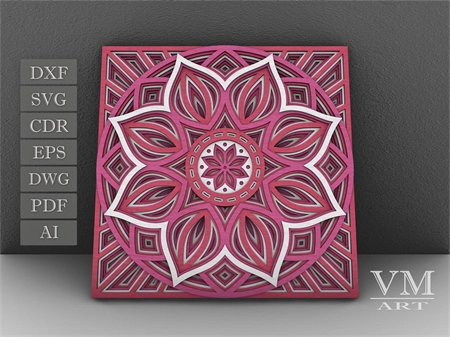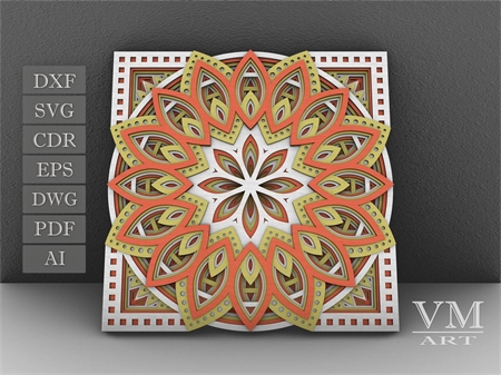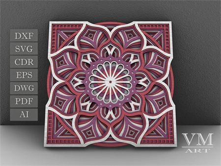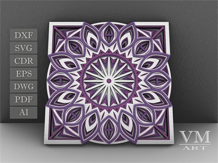 M12 - Layered Mandala SVG File, 3D Flower Mandala, Cut file, Laser cut file Mandala DXF file, Layered Mandala SVG for Cricut