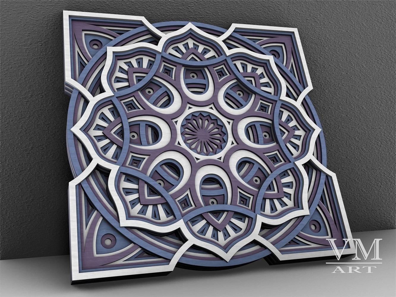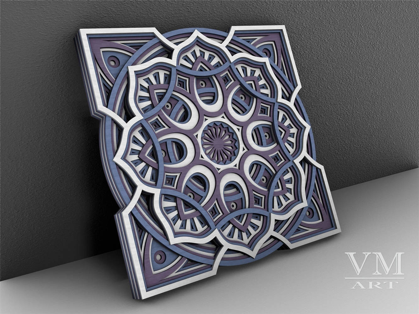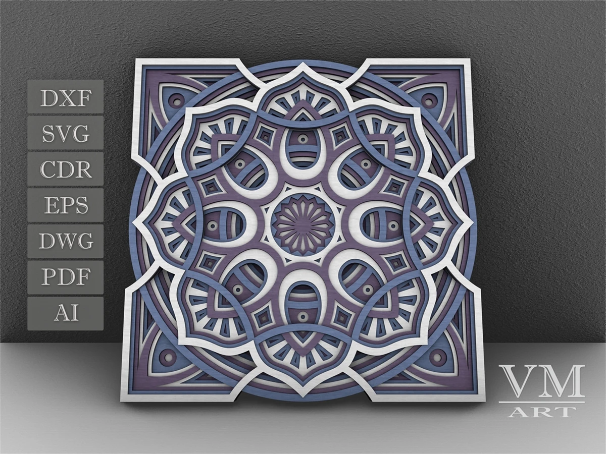 M16 - Layered Mandala SVG File, 3D Flower Mandala, Cut file, Laser cut file Mandala DXF file, Layered Mandala SVG for Cricut