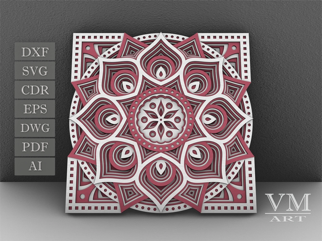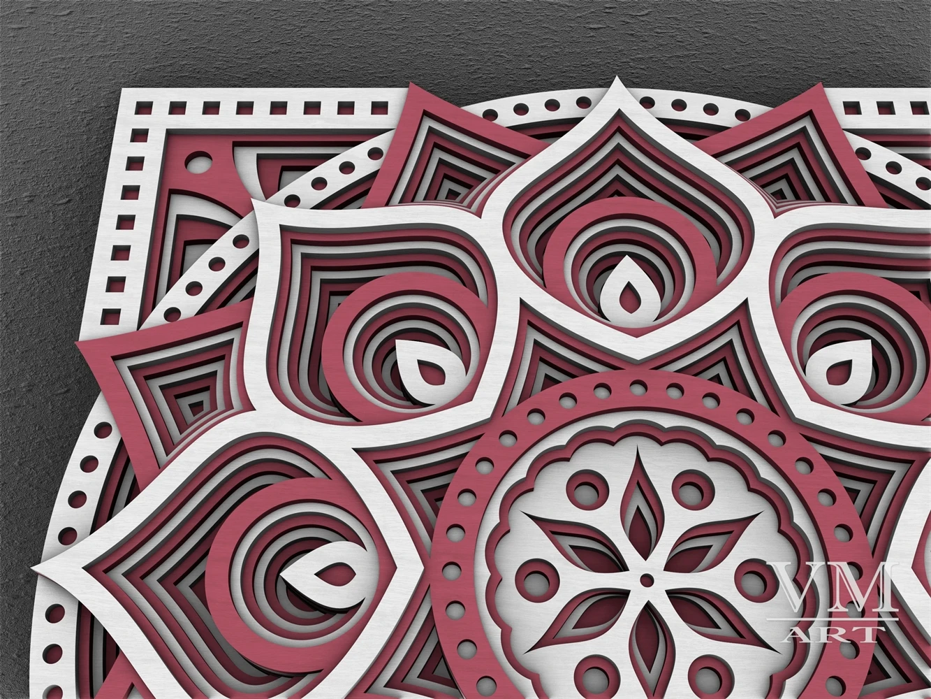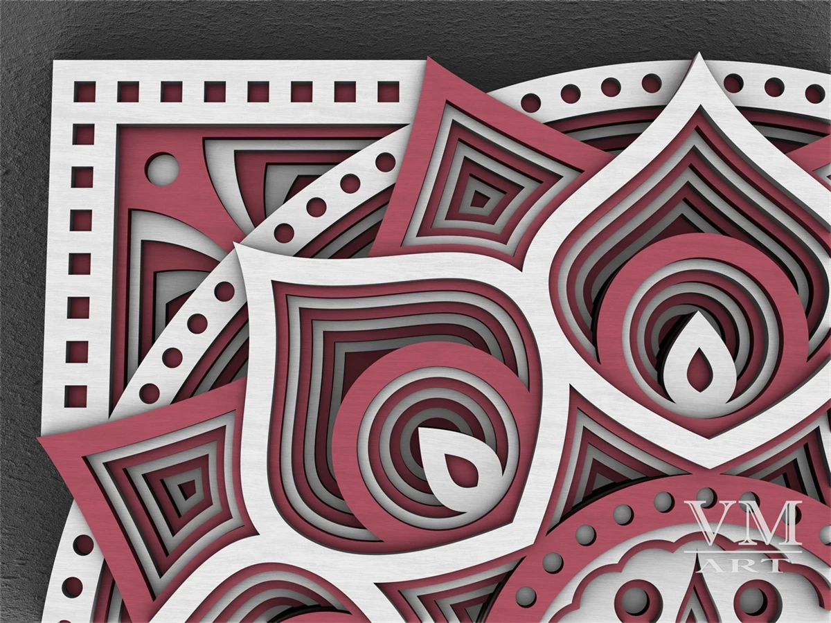 M17 - Layered Mandala SVG File, 3D Flower Mandala, Cut file, Laser cut file Mandala DXF file, Layered Mandala SVG for Cricut