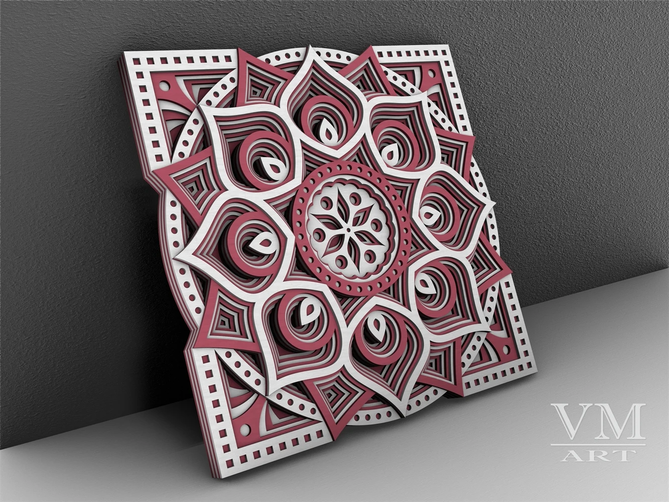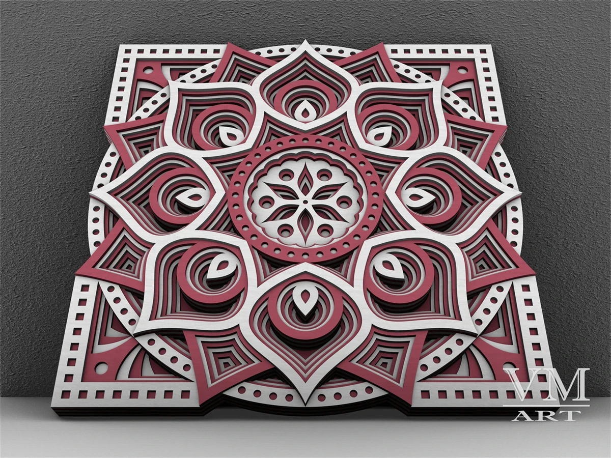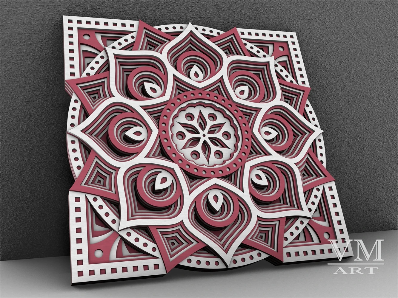 M17 - Layered Mandala SVG File, 3D Flower Mandala, Cut file, Laser cut file Mandala DXF file, Layered Mandala SVG for Cricut