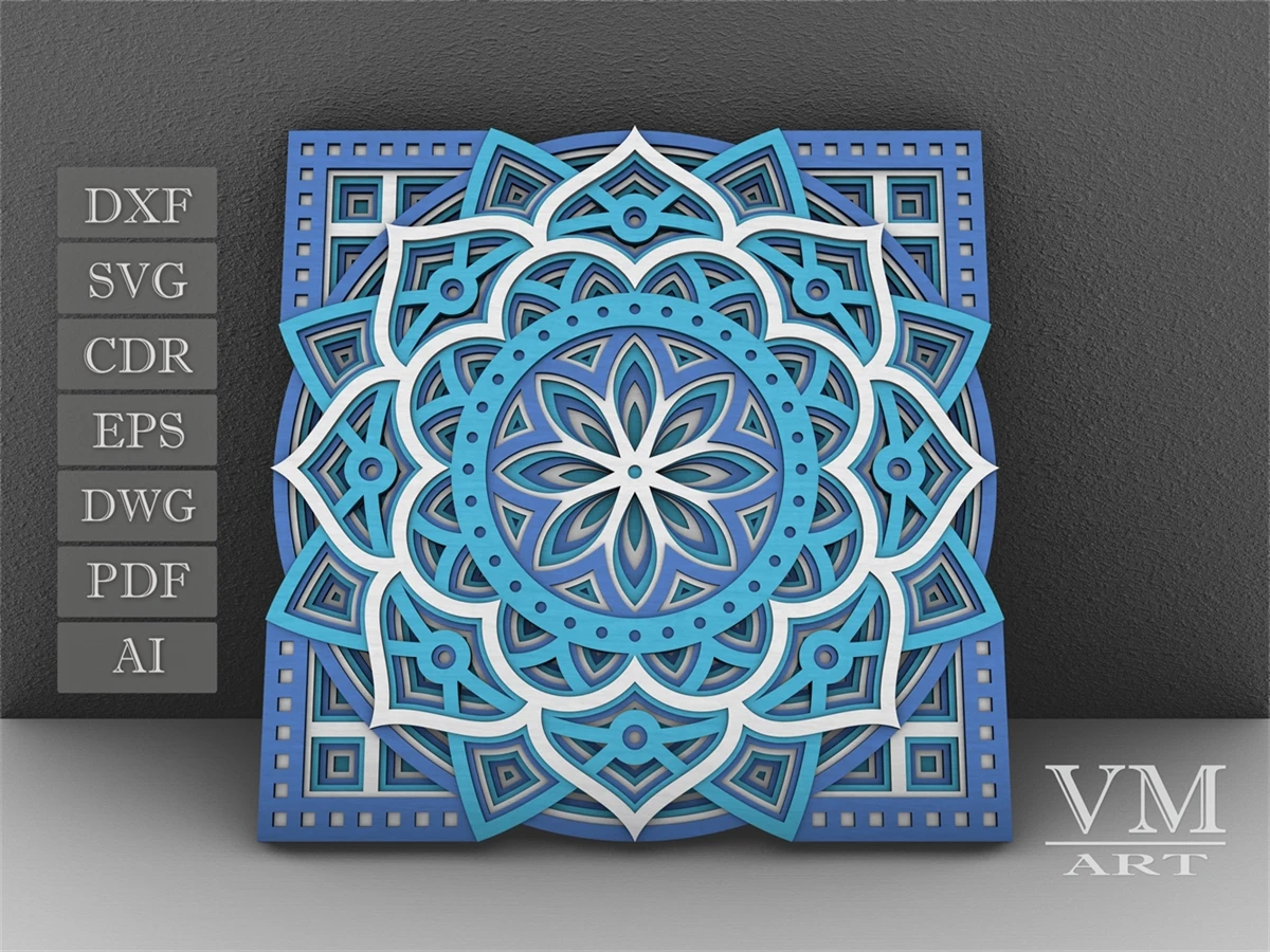 M18 - Layered Mandala SVG File, 3D Flower Mandala, Cut file, Laser cut file Mandala DXF file, Layered Mandala SVG for Cricut