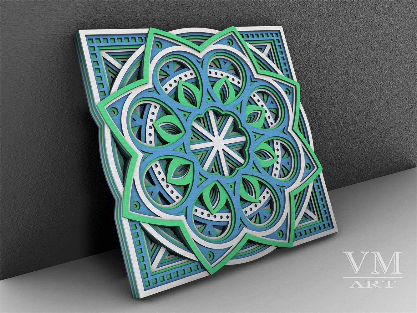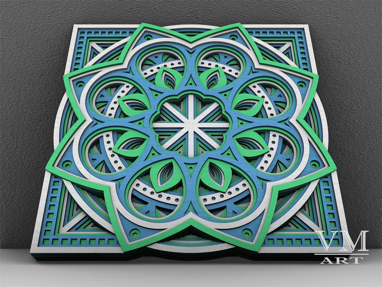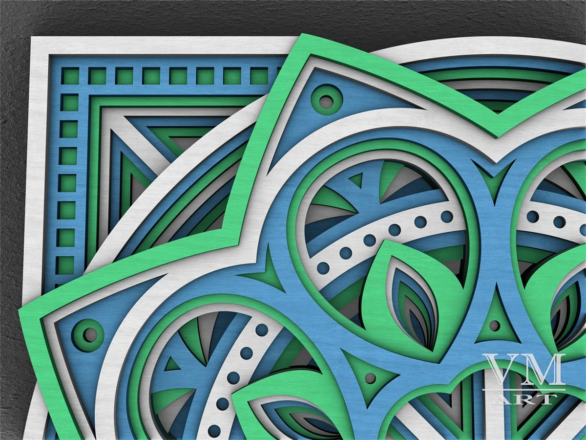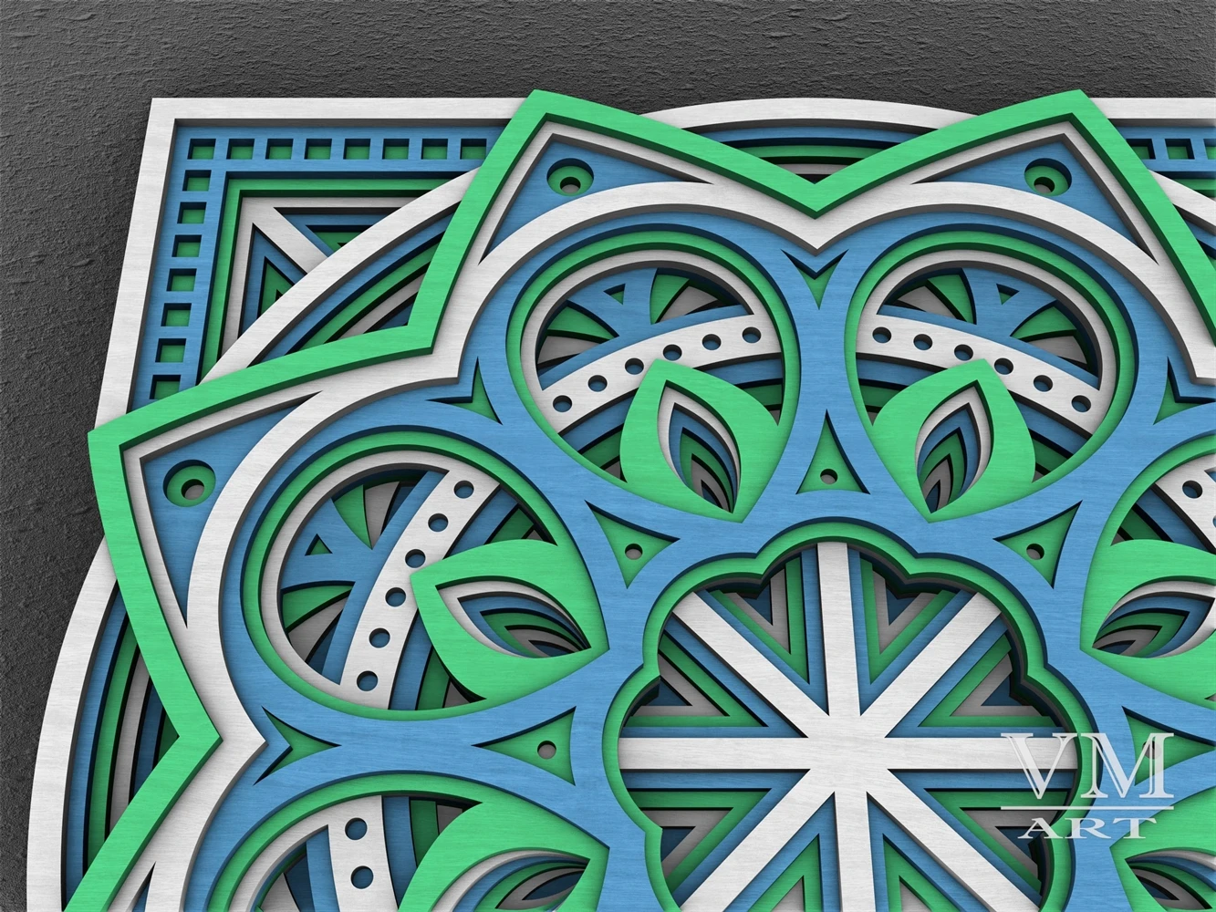 M27 - Layered Mandala SVG File, 3D Flower Mandala, Cut file, Laser cut file Mandala DXF file, Layered Mandala SVG for Cricut