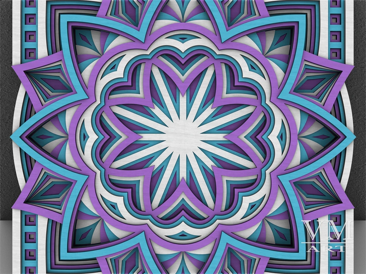 M28 - Layered Mandala SVG File, 3D Flower Mandala, Cut file, Laser cut file Mandala DXF file, Layered Mandala SVG for Cricut