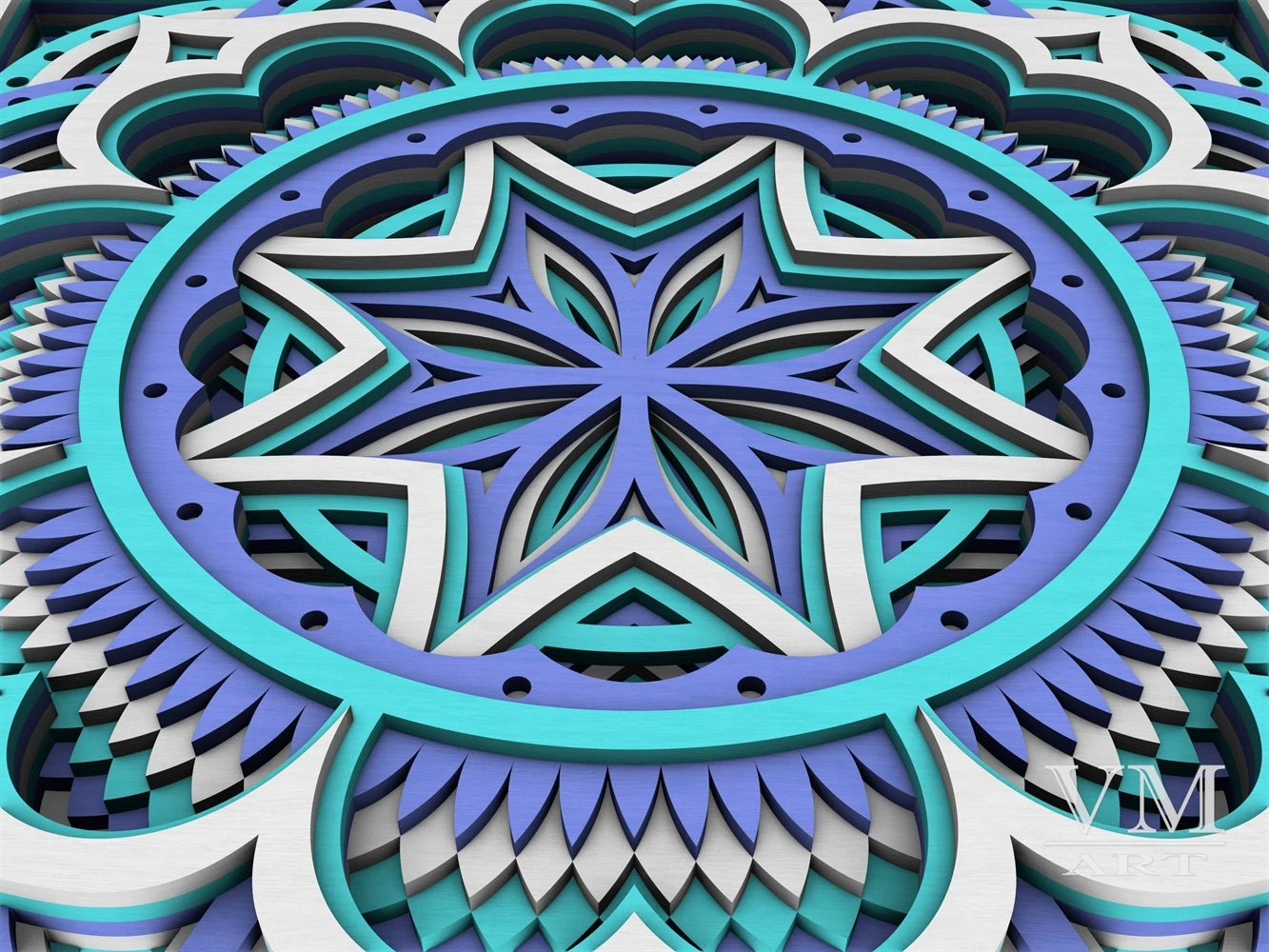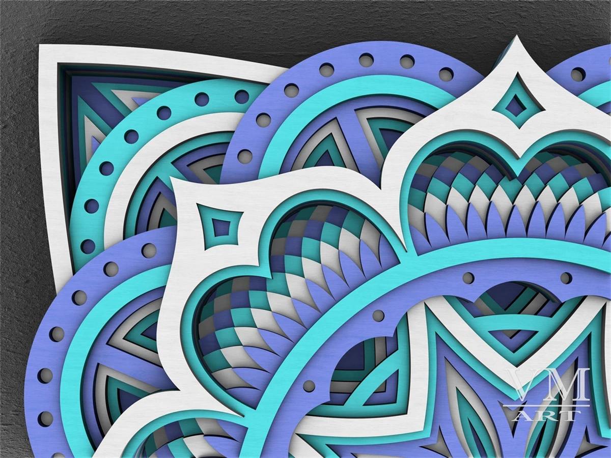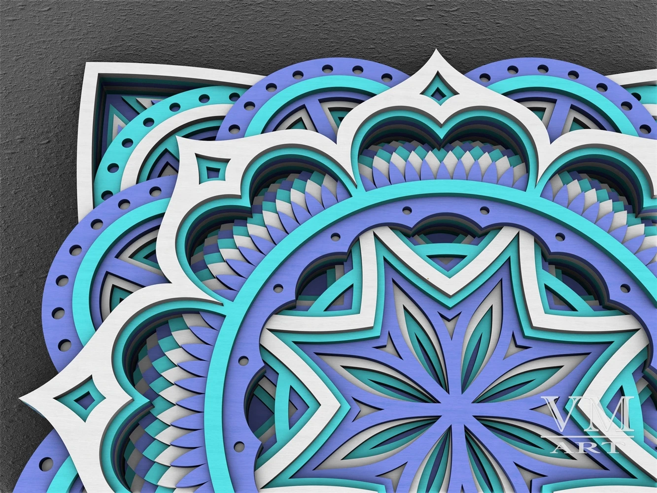 M30 - Layered Mandala SVG File, 3D Flower Mandala, Cut file, Laser cut file Mandala DXF file, Layered Mandala SVG for Cricut