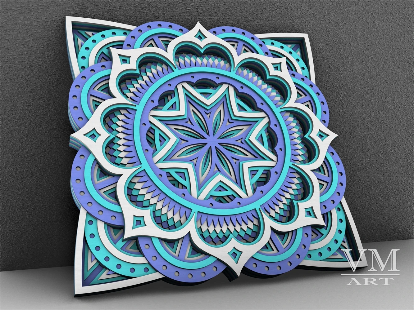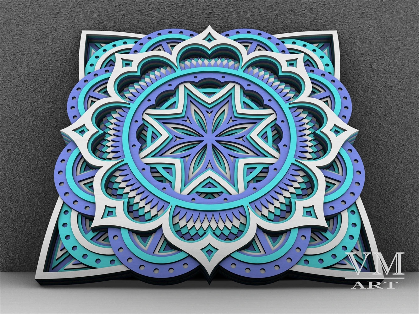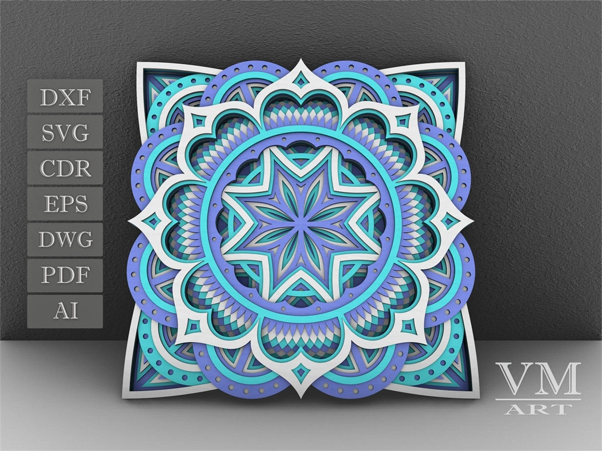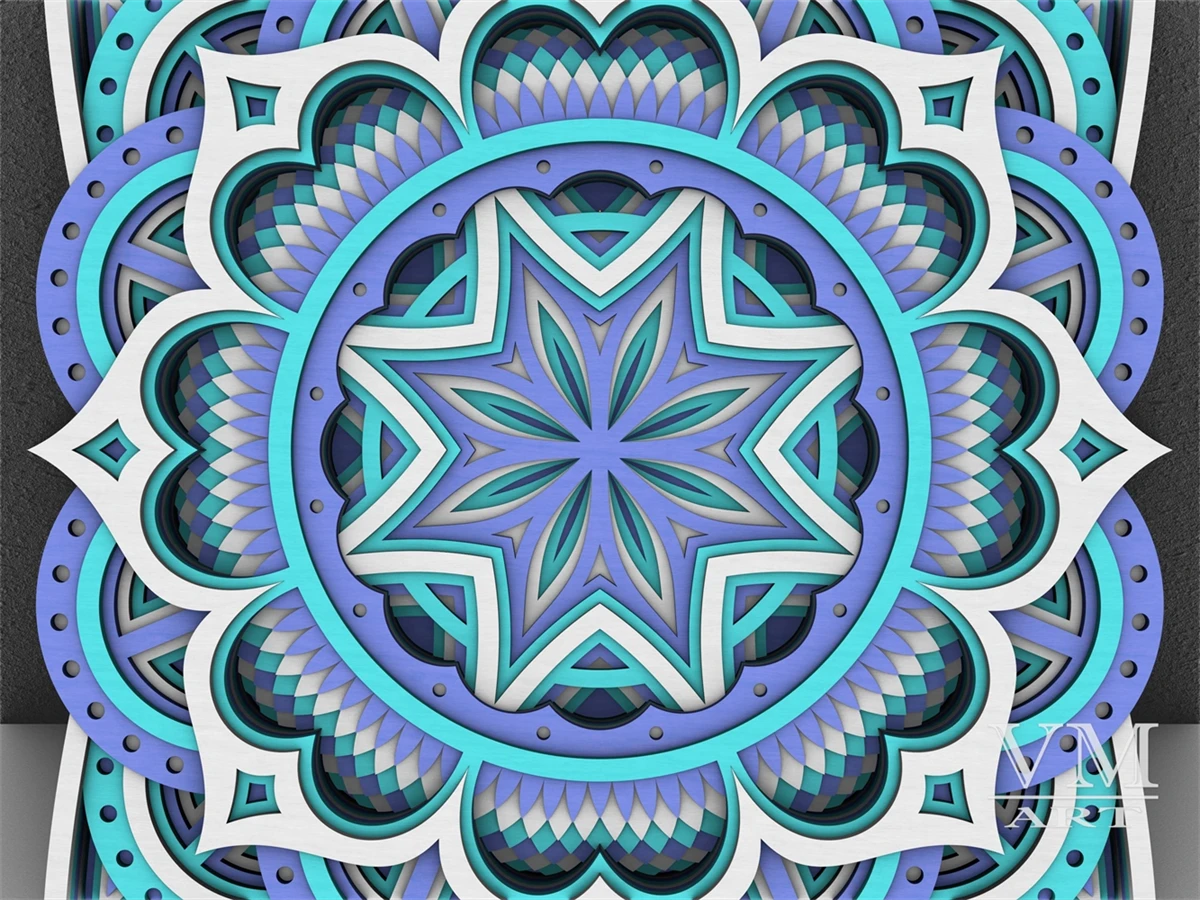 M30 - Layered Mandala SVG File, 3D Flower Mandala, Cut file, Laser cut file Mandala DXF file, Layered Mandala SVG for Cricut