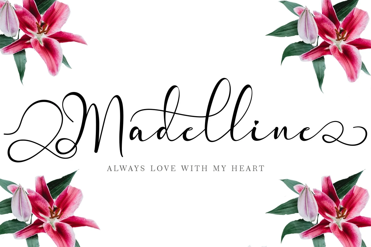 This font is named Madelline. Madelline is a font that is very elegant, beautiful and has a romantic impression. It is suitable for beautifying all types of your work. This font is very unique and has high quality. It is suitable for wedding designs, branding, invitations, signatures, labels, logos, promotion of your business, creating social media status, quotes and more.