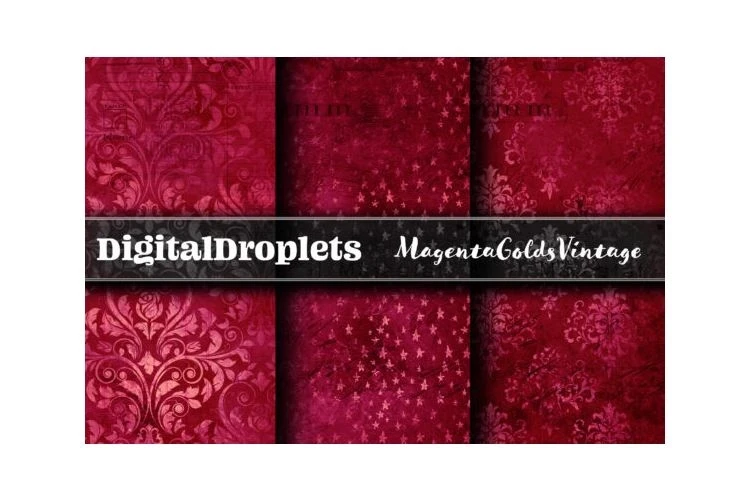 This is a set of 3 patterns overlaid with script on a swirly grunge textured background from the Mystical Fantasy Vintage Collection.