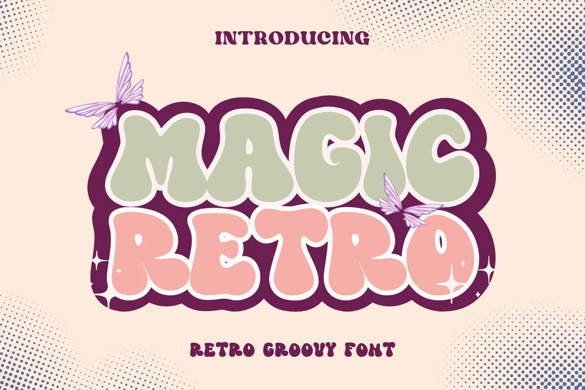 Magic Retro is a fun and retro font, its perfect for designs that need a playful, cheery accent. Magic Retro is suitable for book covers, posters, packaging, merchandise, logotypes, and many more!