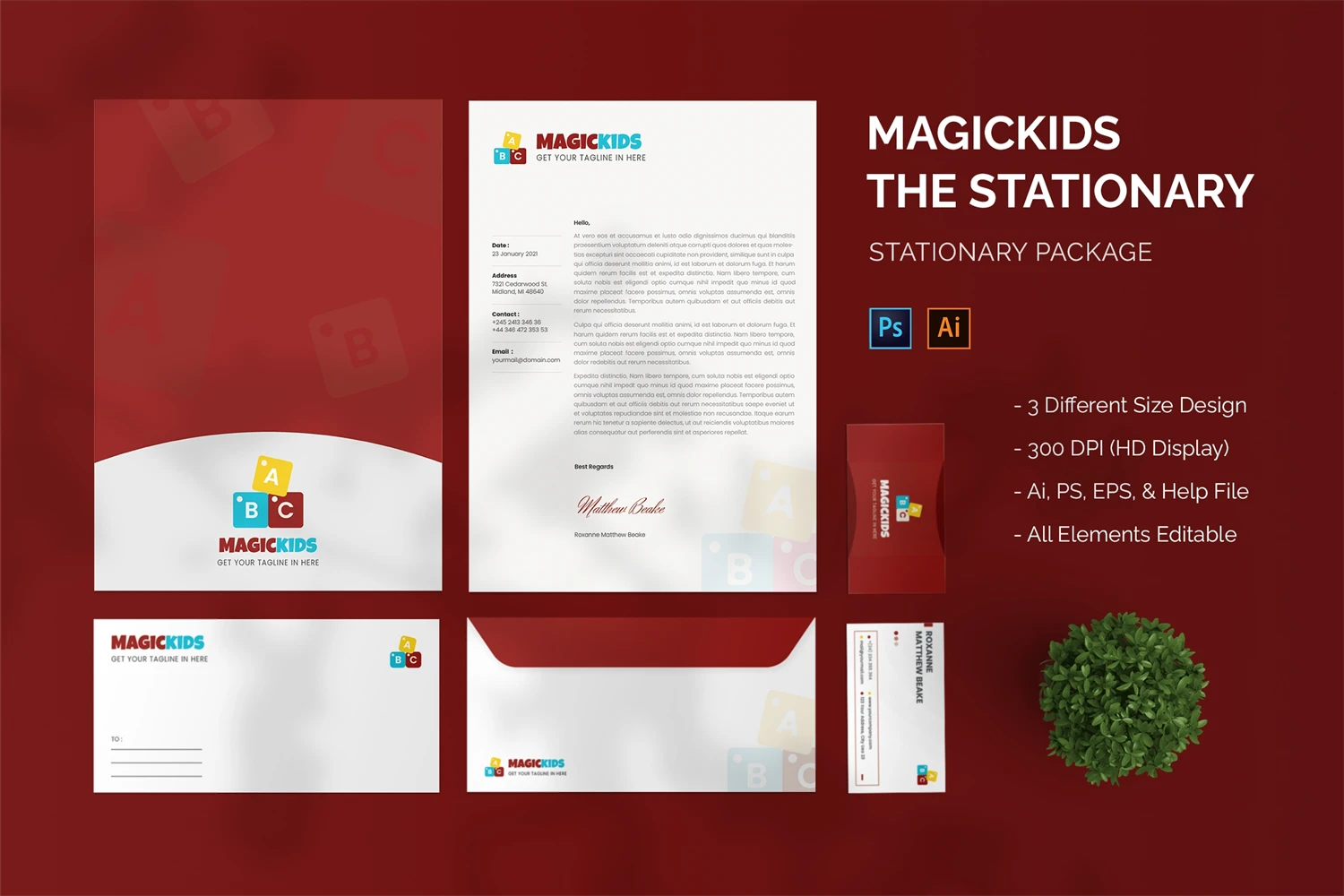 Magickids - Stationary. This template is great for your business and this design will make your interested, elegant, and easily editable according to your needs. I hope you enjoy for this stationary.