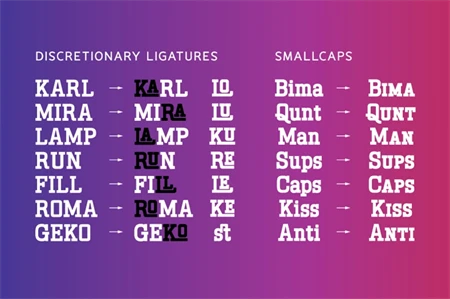 This font is suitable for any project. Great for graphic design and any display use. It can easily work for web, signage, corporate as well as editorial designs.