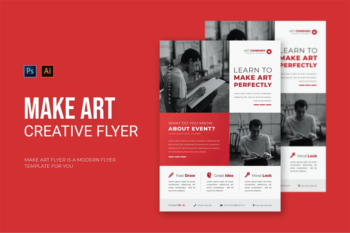 Make Art - Flyer. This Flyer template is designed for your company's business needs. very clean and elegant, and also easily edited and adjusted to your liking