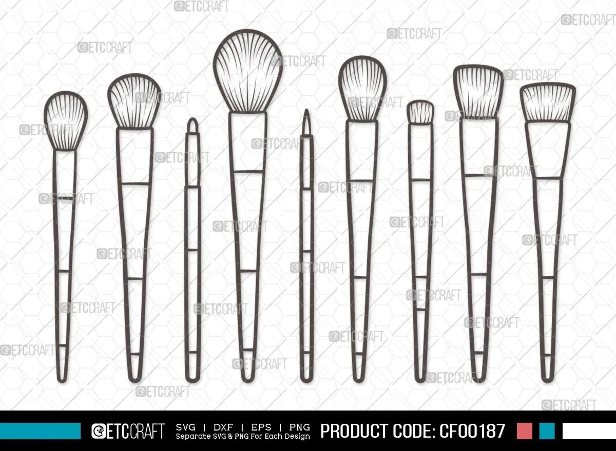 Enhance your makeup-themed projects and let your creativity shine with our Makeup Brushes Outline Cosmetic Beauty Artist Brushes Set SVG Cut File Bundle. Download now and infuse sophistication into your beauty-related endeavors!
