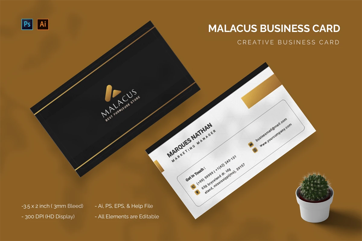 This Malacus - Business Card make your business cards look professional. You can use this business card for, identity, company business cards, Corporate Business, Creative, Blogs, Photographers, Artists, Designers, etc.