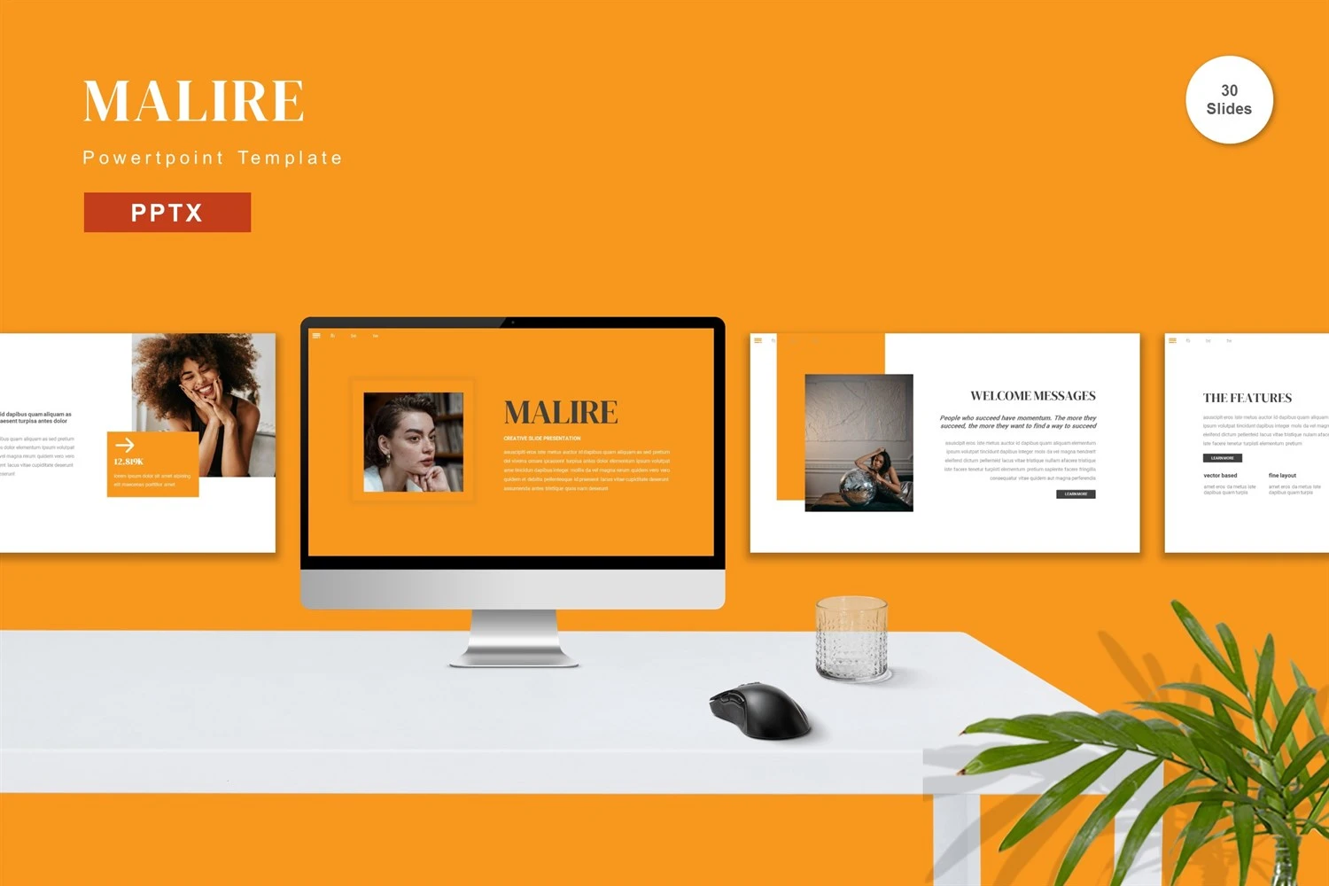 Get it now! **Malire - Powerpoint Template** for All Business and Personal Needs All elements on this template are editable; input your content, replace your image with a placeholder, change the color, and all presentations include an animated slide to present your slides.