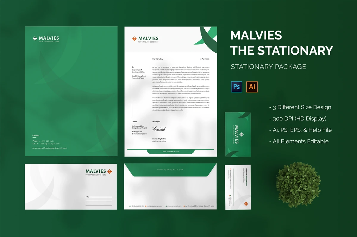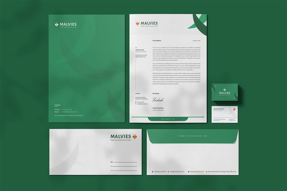 Malvies - Stationary. This template is great for your business and this design will make your interested, elegant, and easily editable according to your needs. I hope you enjoy for this stationary.