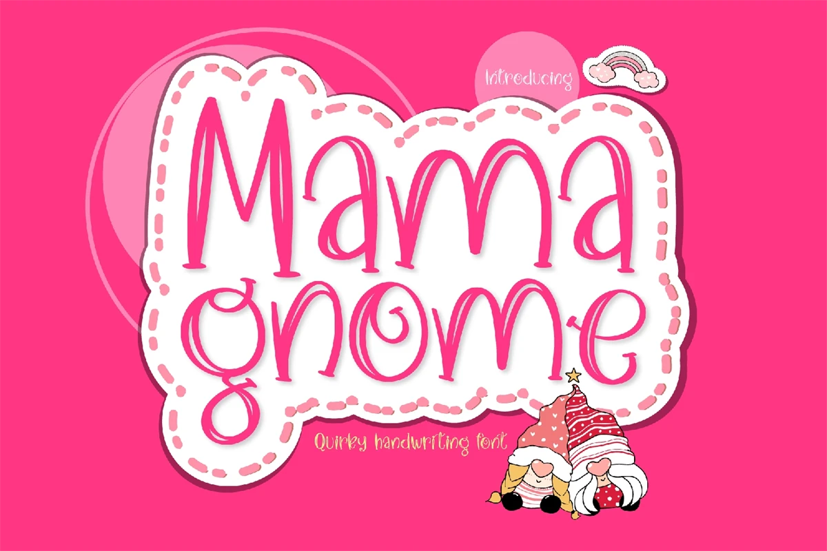 Mama Gnome is a playful and quirky display font. Whether you are using it for cartoon-related designs, childrens games, quotes, titles, brand names, book covers, posters, or just any creation that requires a touch of beauty, this font is a great choice.