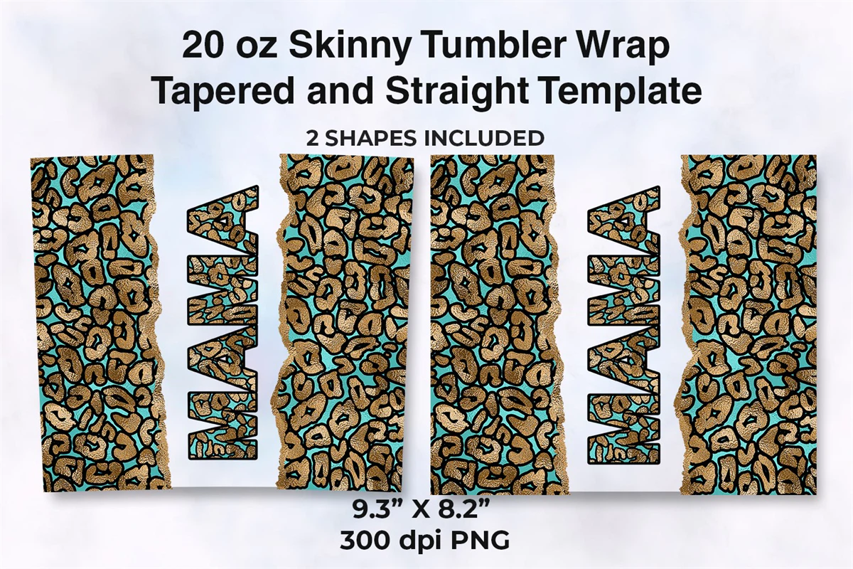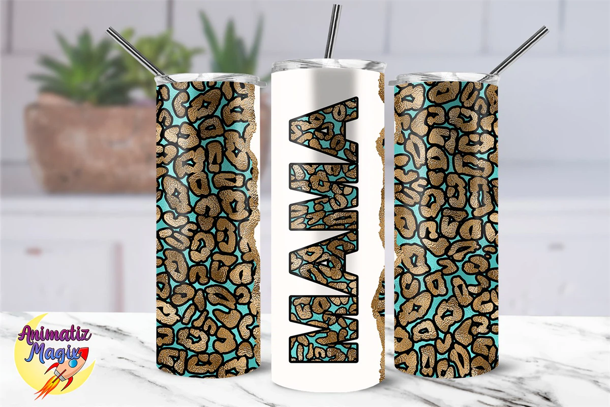 MAMA Leopard Glitter Sublimation Tumbler Wrap Turquoise