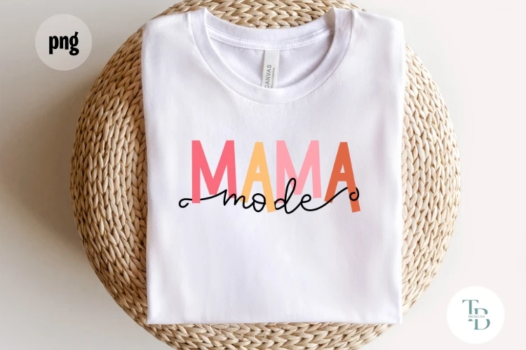 The Mama Mode t-shirt design is a fun and playful way for moms to show off their superpowers. The design features the text "Mama Mode" in bold, letters with a stylish and modern font. The image is playful and whimsical, making it a great conversation starter.