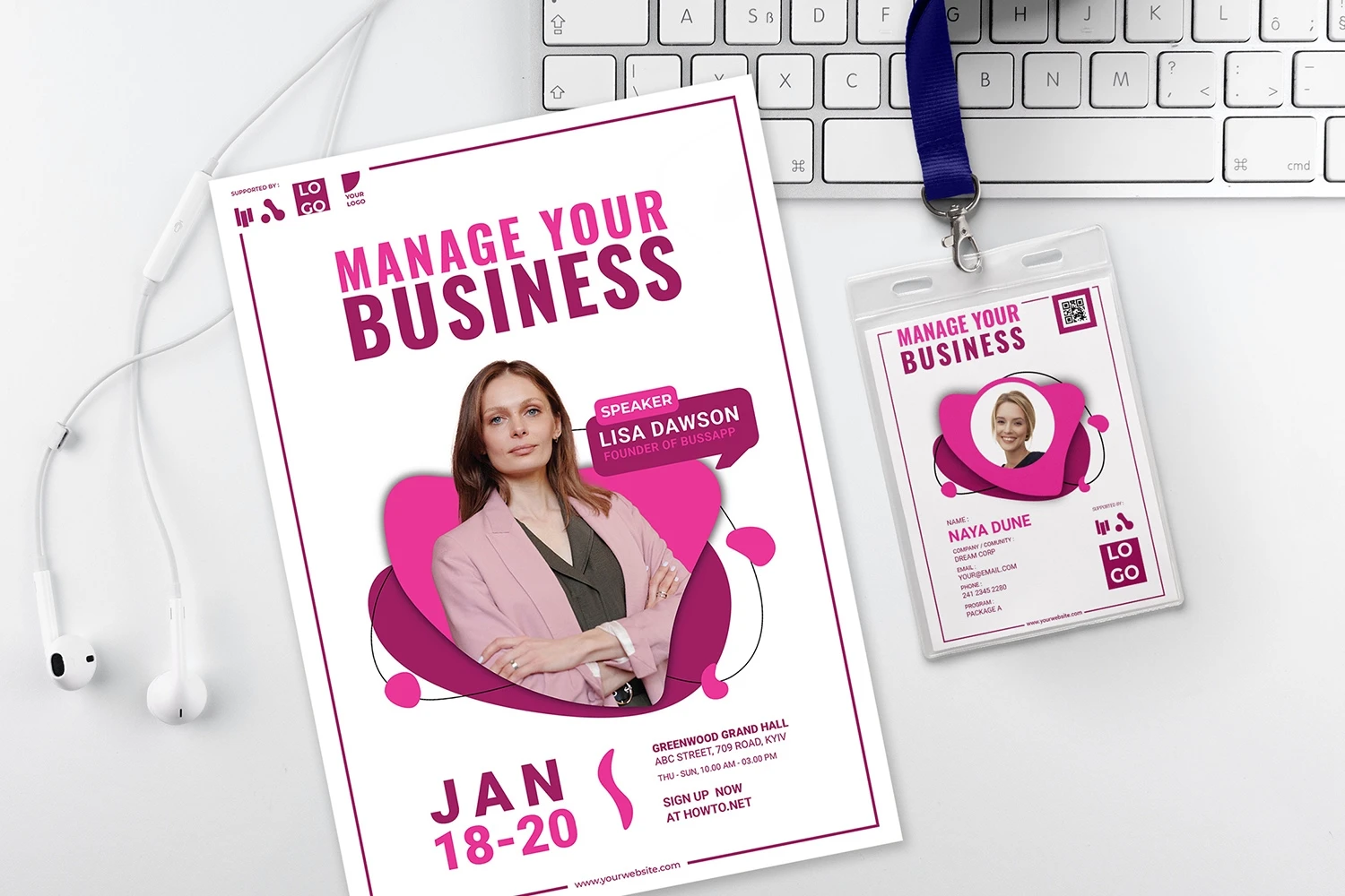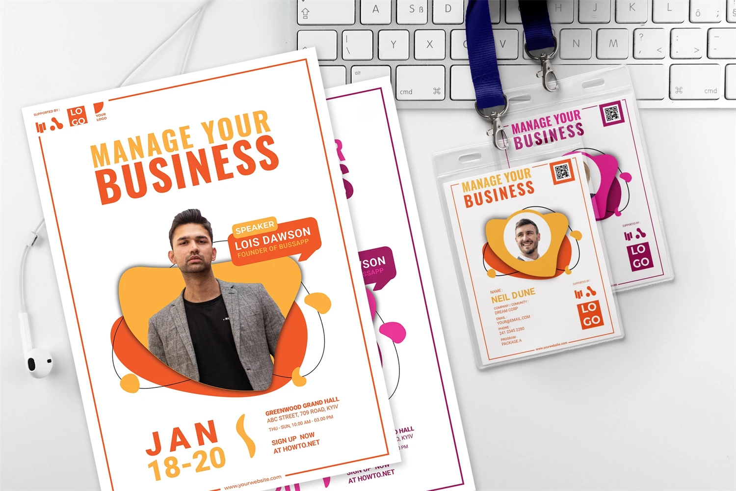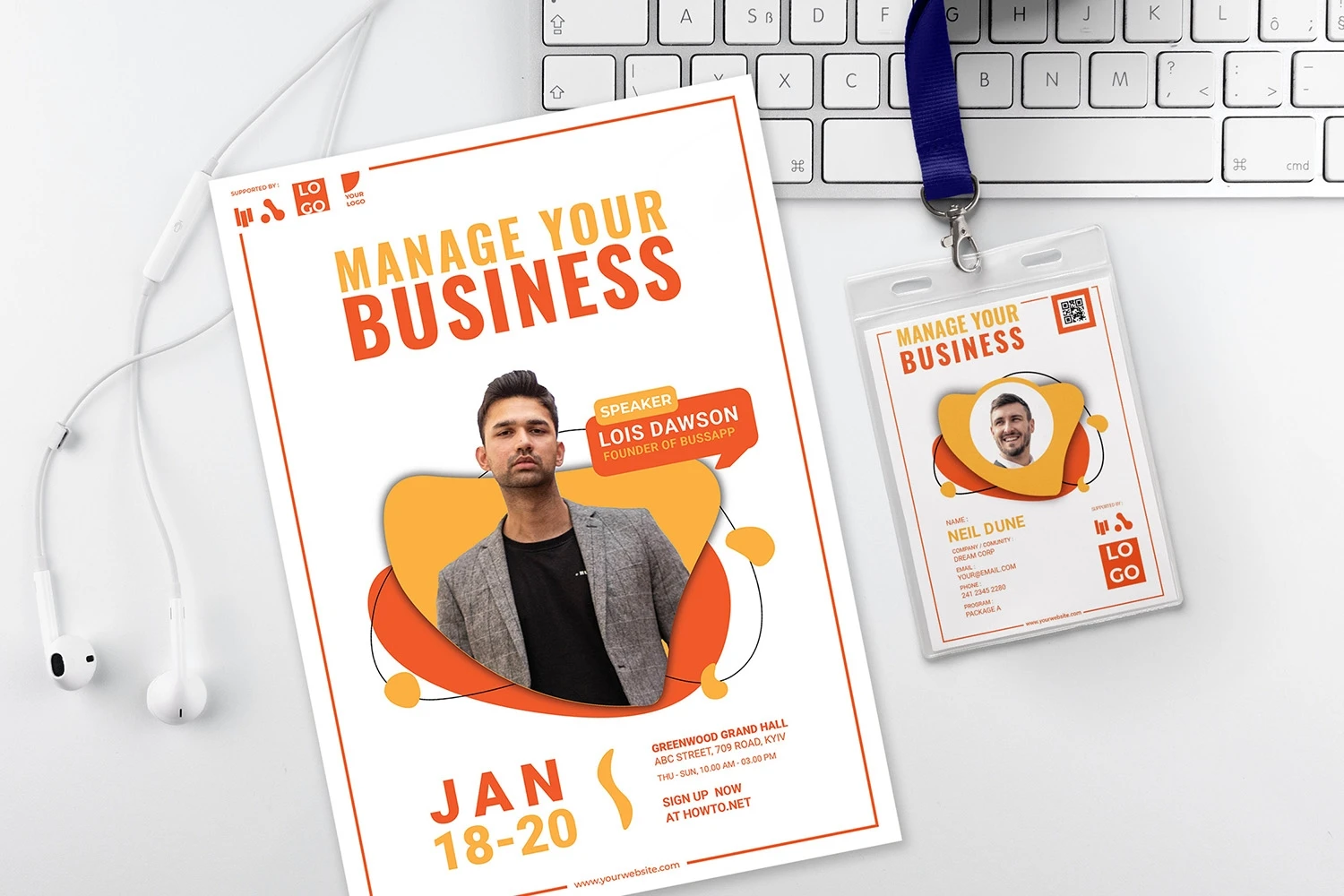 Manage Your Business - Seminar Invitation, is an invitation card leaflet, poster design, etc. Simple and very elegant You can easily edit & adjust each design because each layer such as text, images and shapes are well organized and highlighted.