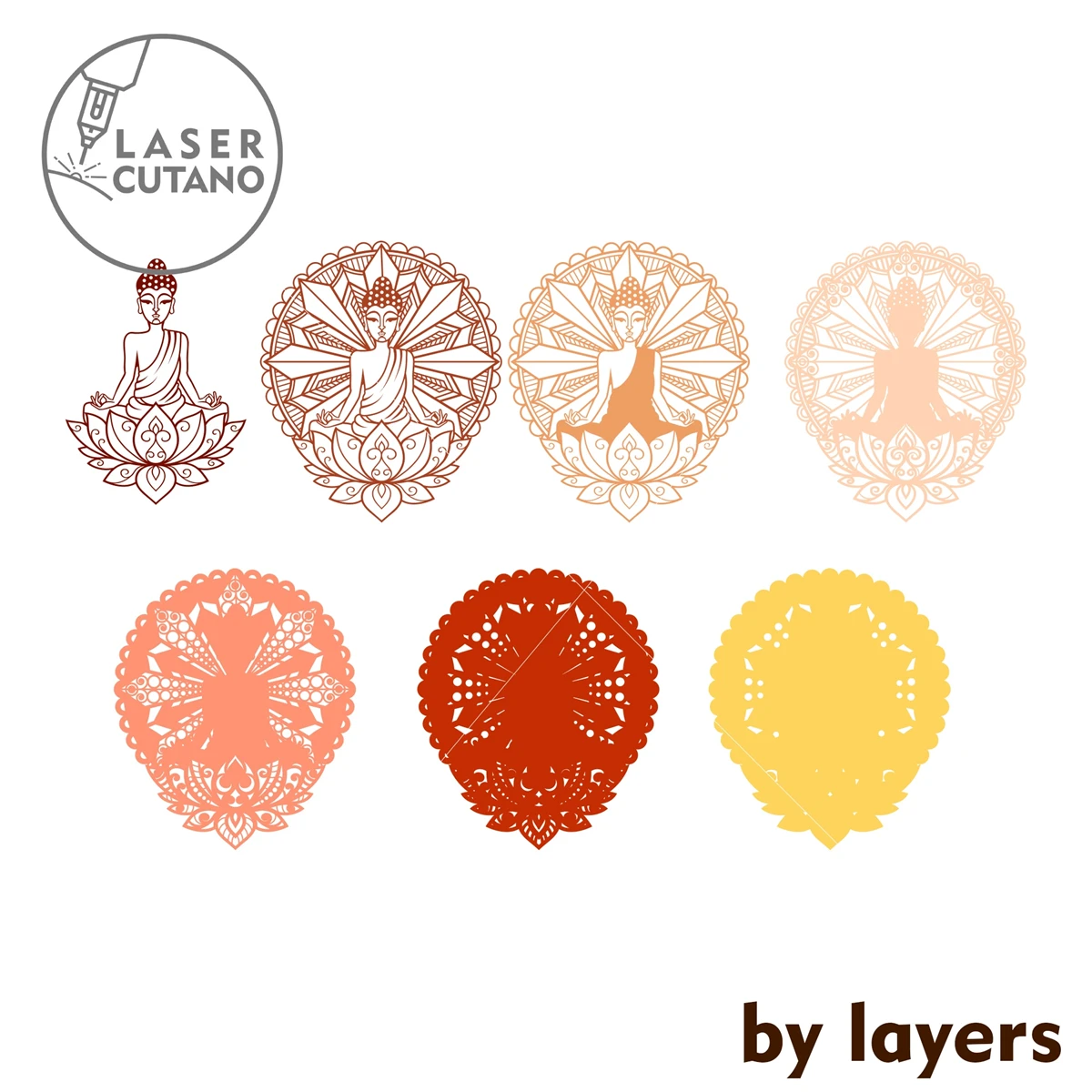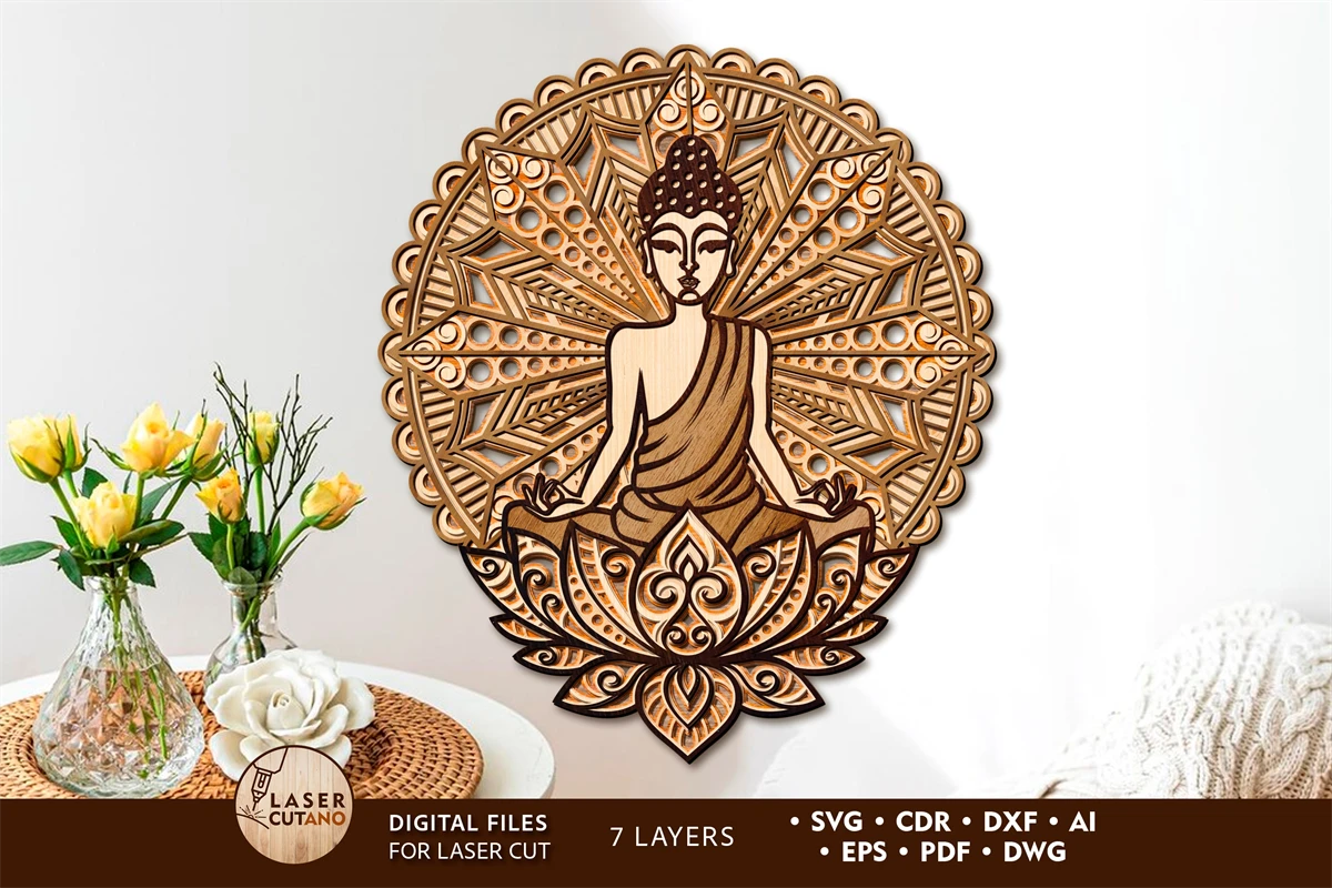 BUDDHA Mandala Digital multilayer layout files are specially prepared for the laser cut, CNC router machine and other cutting machines.