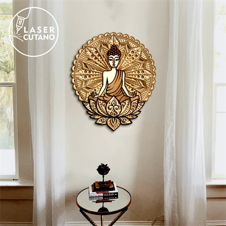 A layered Buddha mandala wall art design is a striking and spiritually meaningful decorative piece that combines the intricate beauty of a mandala with the serene presence of Buddha. This design typically features a multi-layered composition, where various elements are stacked or overlaid to create a visually captivating and dimensional effect.