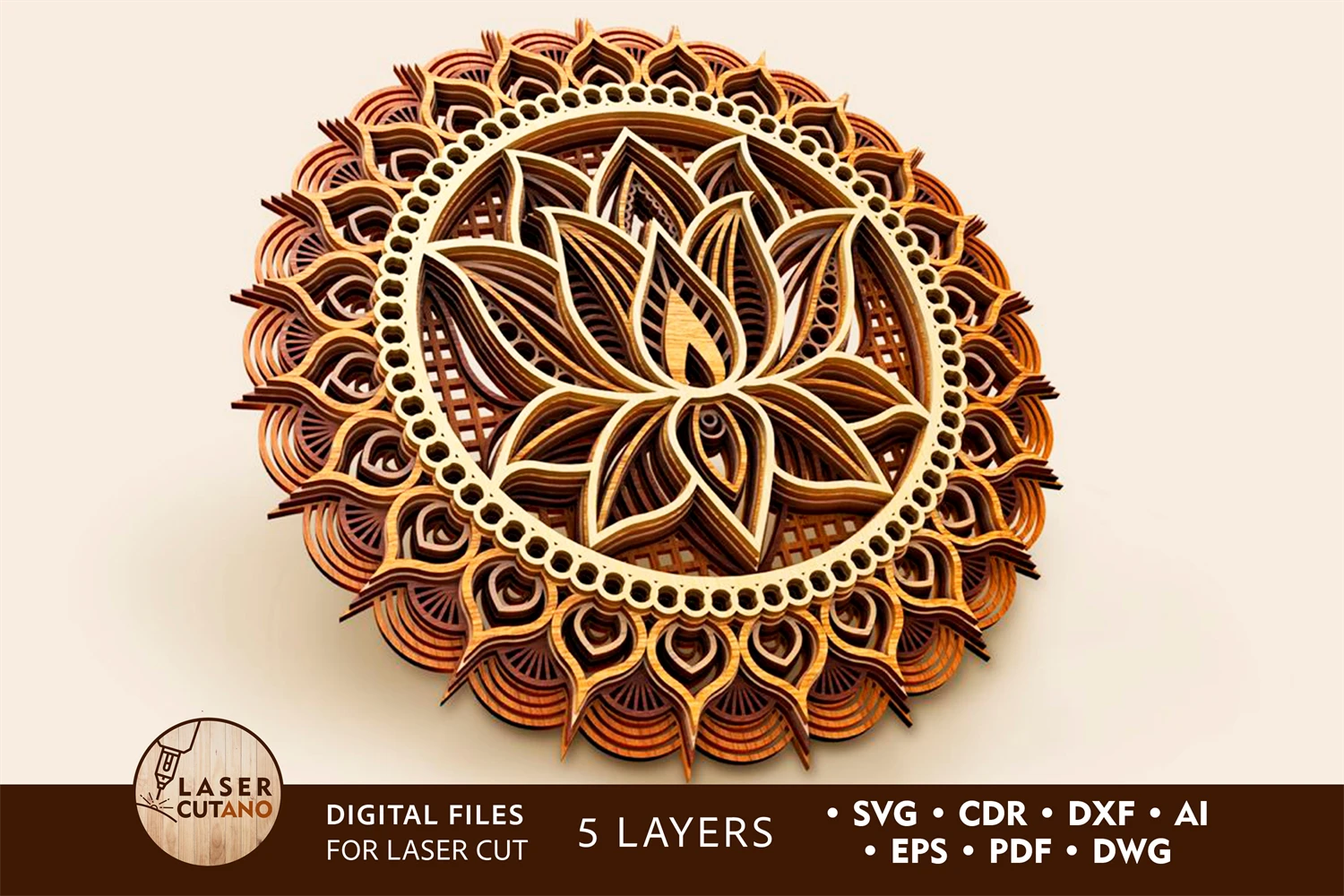 MANDALA LOTUS Digital multilayer layout files are specially prepared for the laser cut, CNC router machine and other cutting machines.