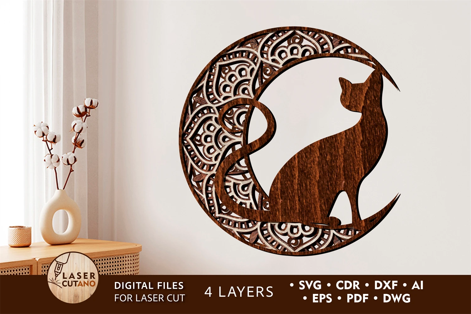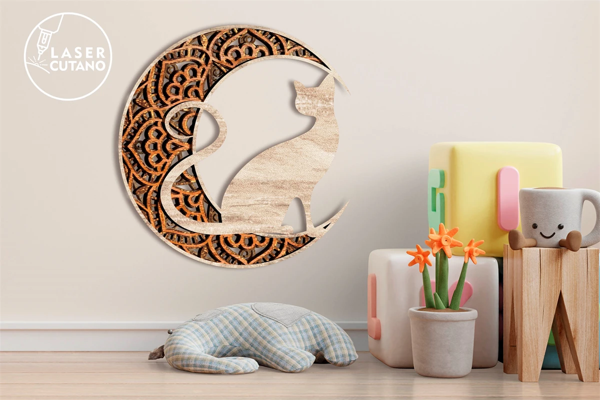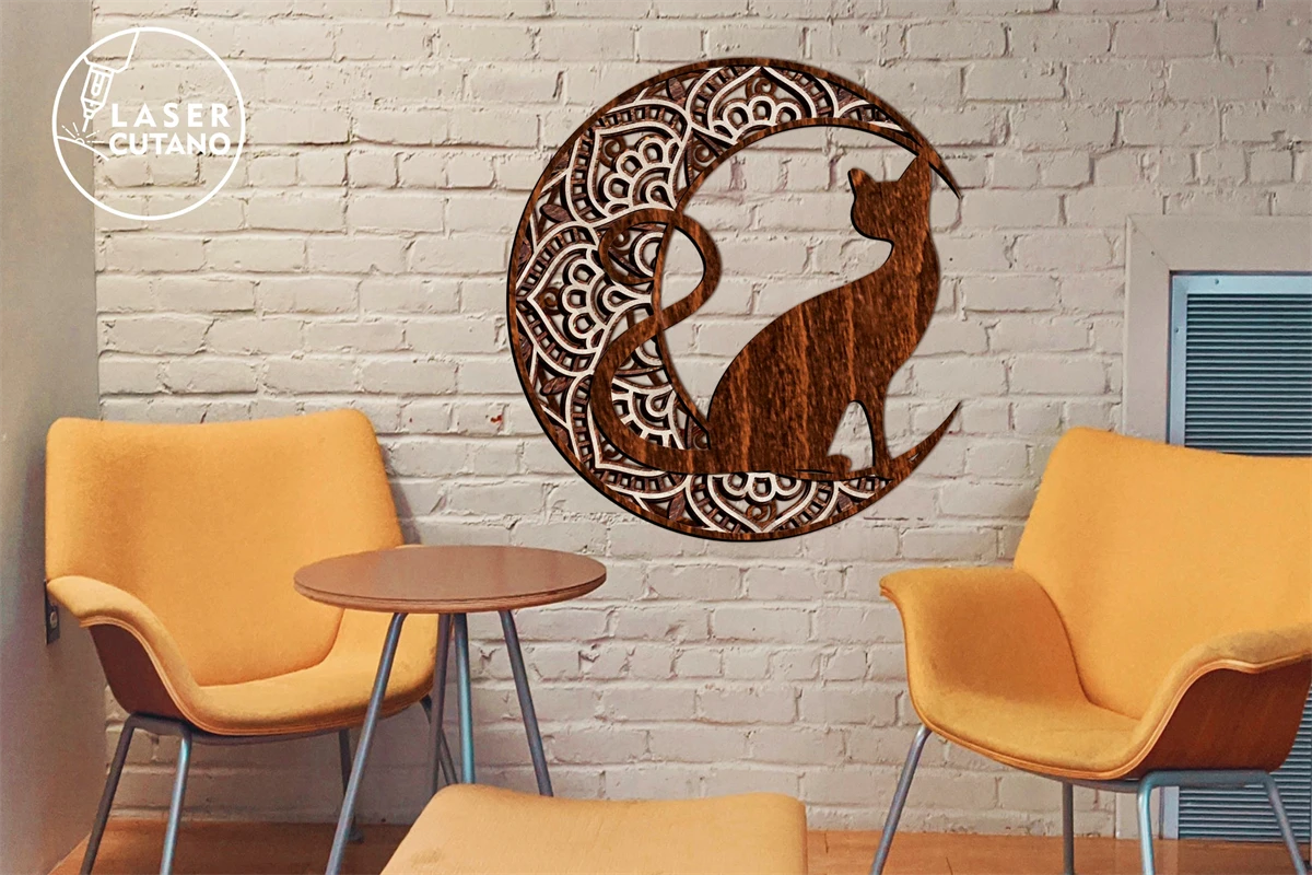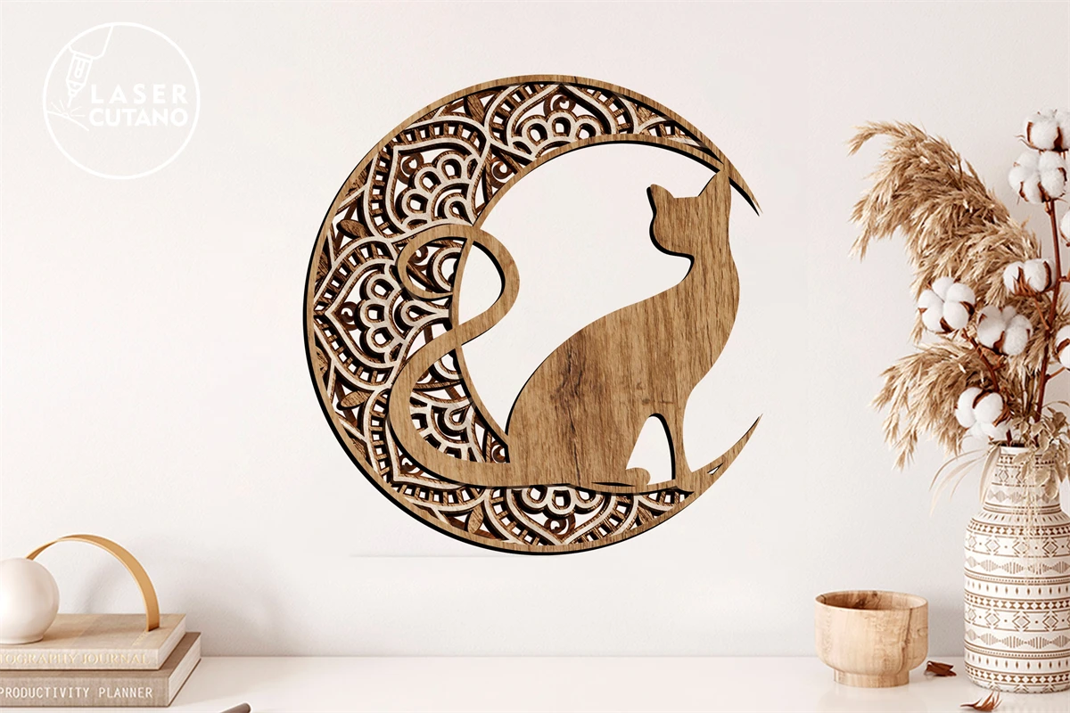 Mandala Laser Cut Out Wood Moon Dxf Cat and Mandala Cnc Wood. These laser cut files are digital files that are used to create designs or patterns using a laser cutter machine!