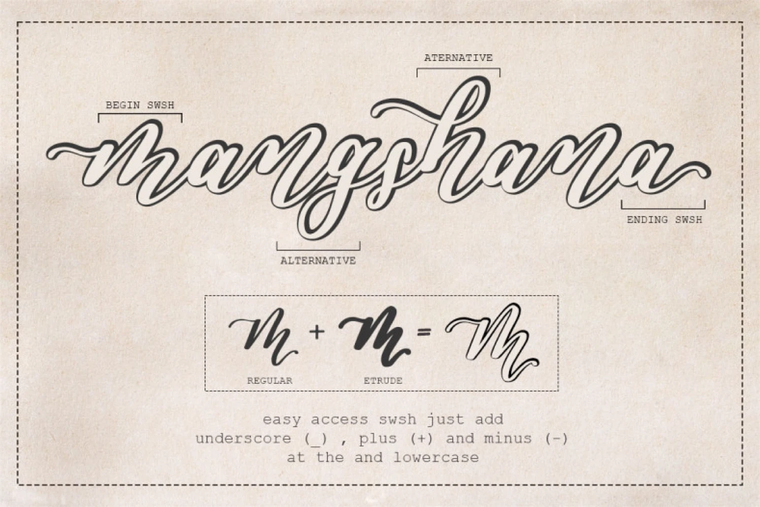 Hi, Introducing Mangshana is a modern script calligraphy font. A classic look with alternative font options, this font is very easy to use making it perfect for adding a touch of elegance to your designs.