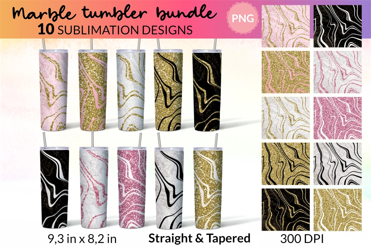 Marble Tumbler Glitter Sublimation Tumbler Design Bundle PNG