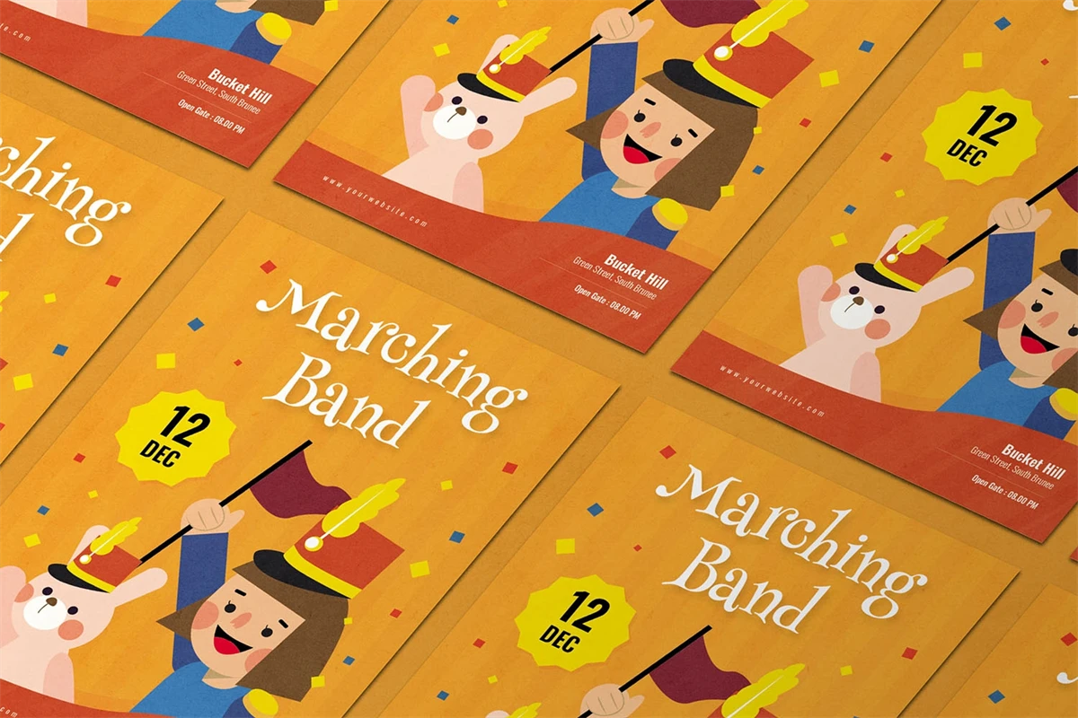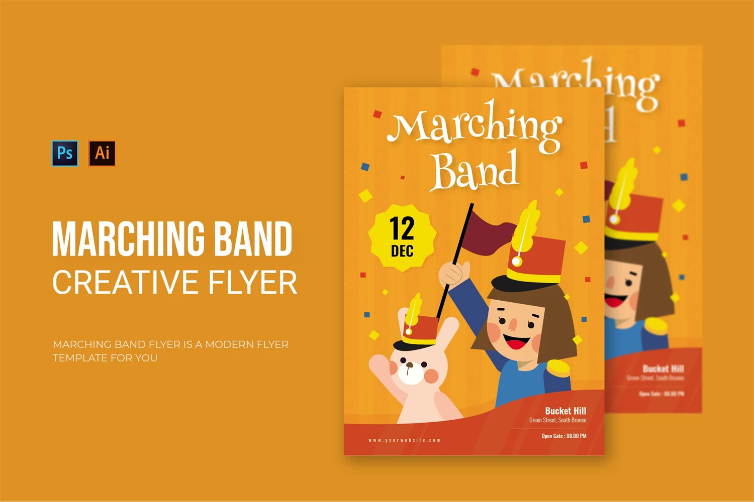 Marching Band - Flyer. This Flyer template is designed for your company's business needs. very clean and elegant, and also easily edited and adjusted to your liking