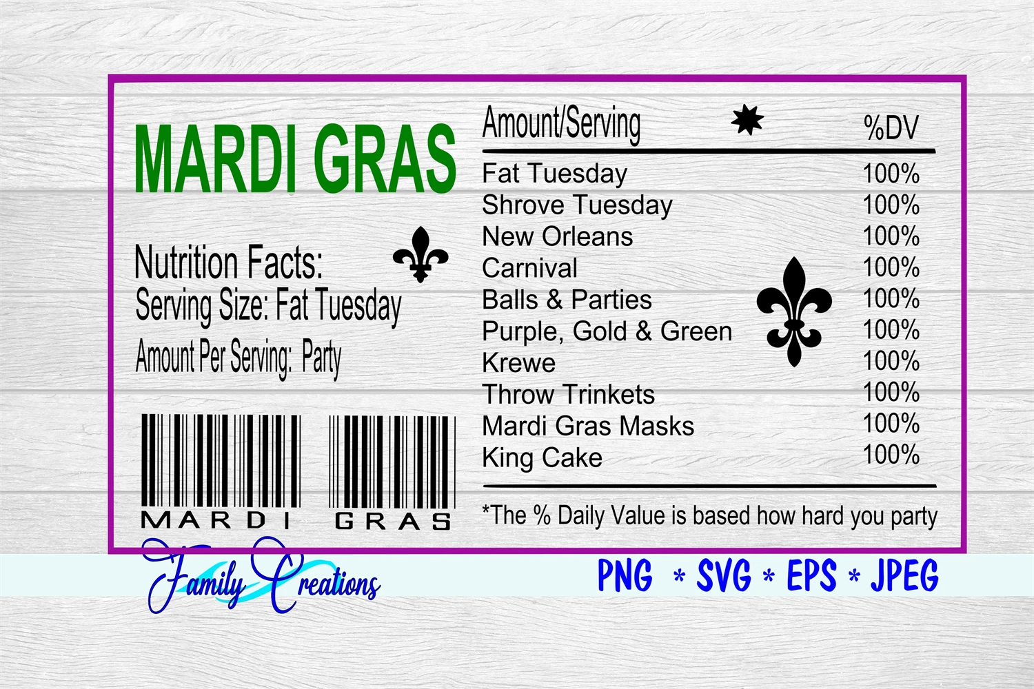 Mardi Gras Nutrition Label