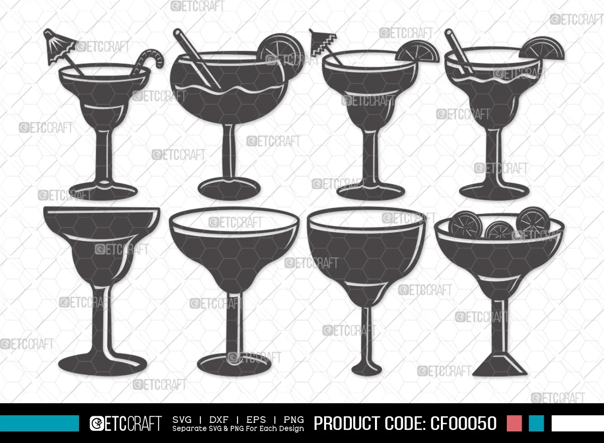 Unleash the spirit of summer cocktails with our "Margarita Glass Silhouette Martini Lime Glass" SVG cut file bundle. Let the zest of lime and the allure of cocktails inspire your creative journey!