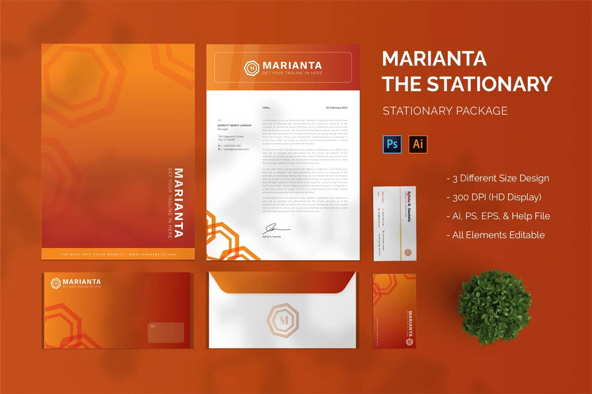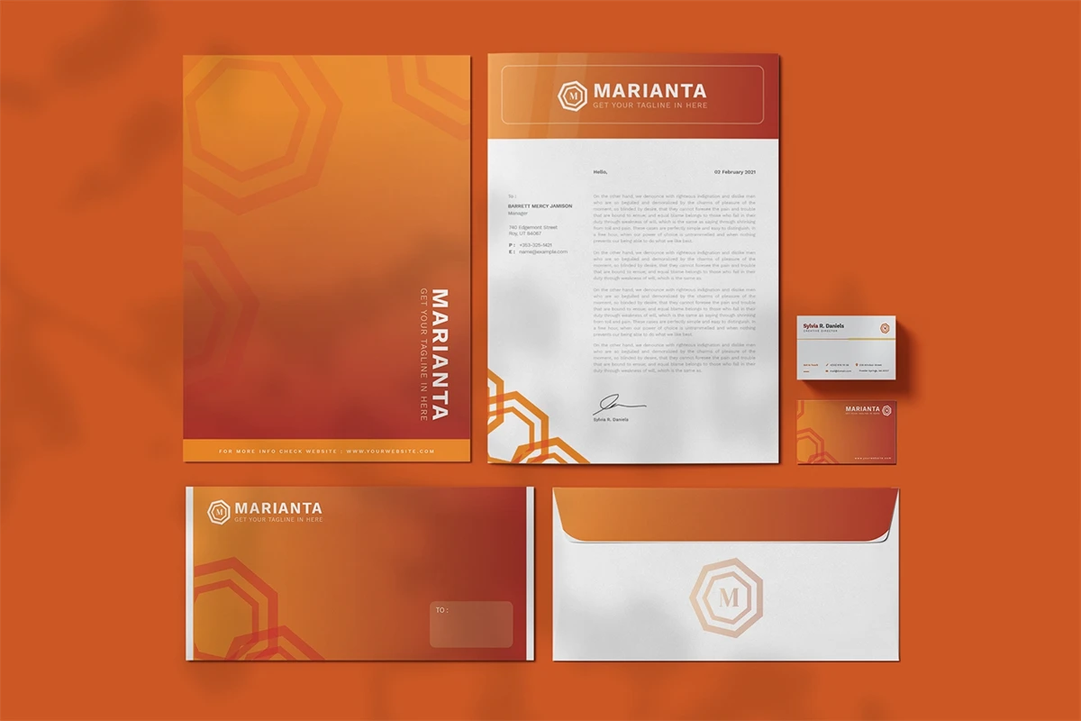 Marianta - Stationary. This template is great for your business and this design will make your interested, elegant, and easily editable according to your needs. I hope you enjoy for this stationary.