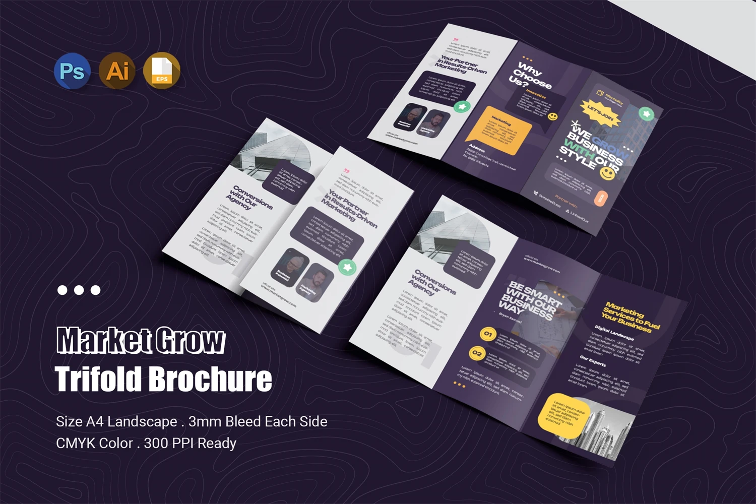 Our trifold brochure template is perfect for events, seminars, workshops, launches, advertisements, minimalist menu cafes, and many more. elegantly designed, modern, and extremely readable. Dont worry it very easy to use and customize