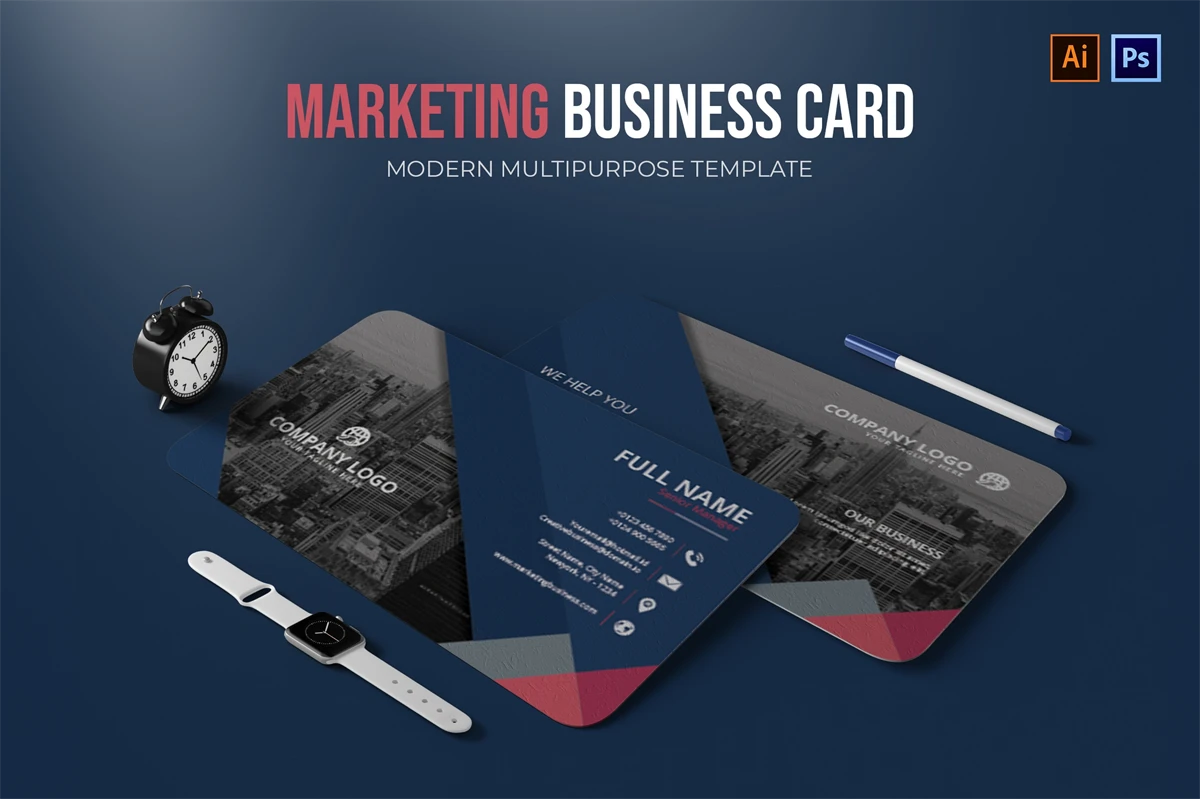 This Marketing - Business Card make your business cards look professional. You can use this business card for, identity, company business cards, Corporate Business, Creative, Blogs, Photographers, Artists, Designers, etc.