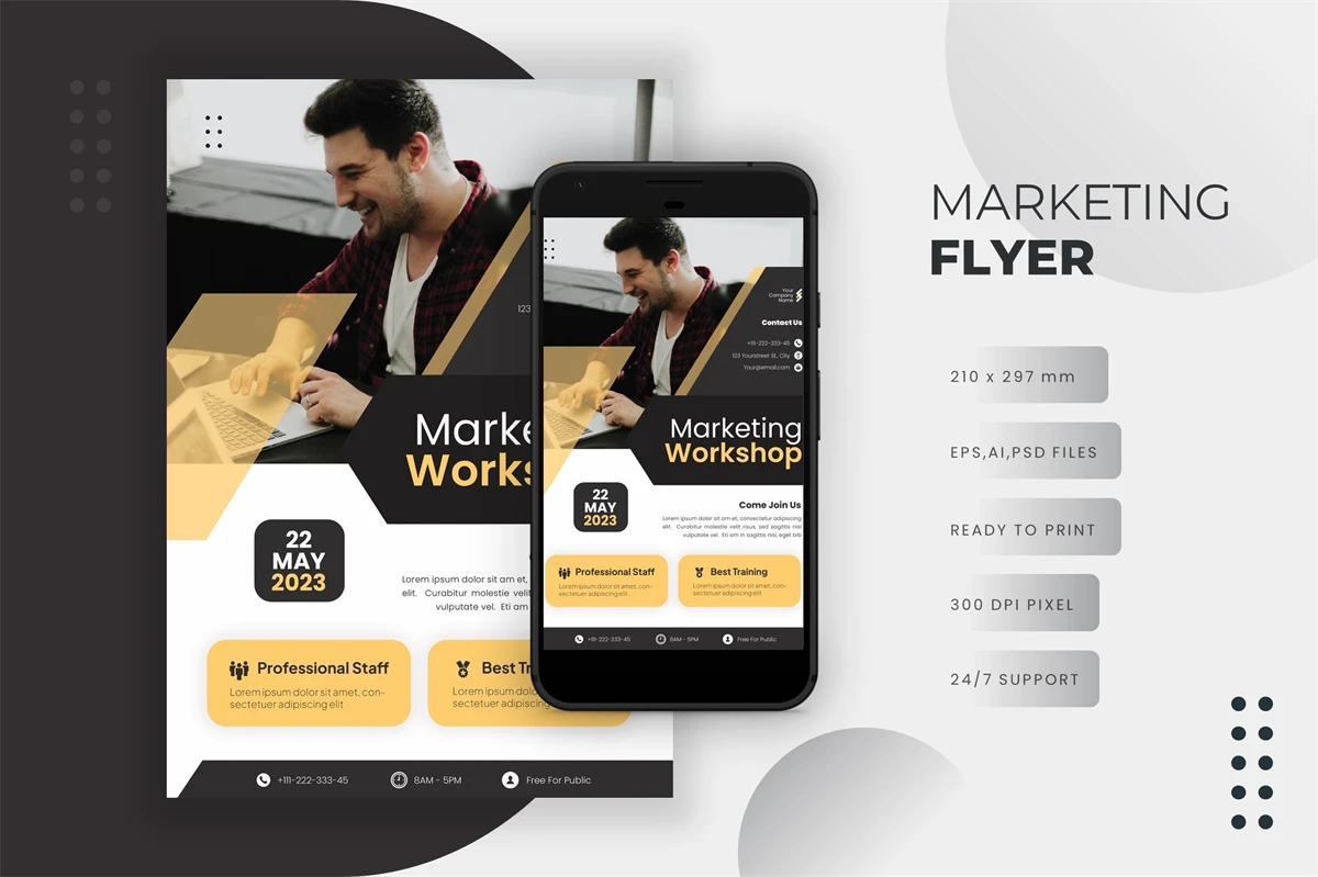 A sleek and simple flyer that may be used for business or pleasure. It may be easily modified, making it perfect for use in any business endeavor. Basically, you just need to update the text and visuals. In other words, you may alter it to your satisfaction.