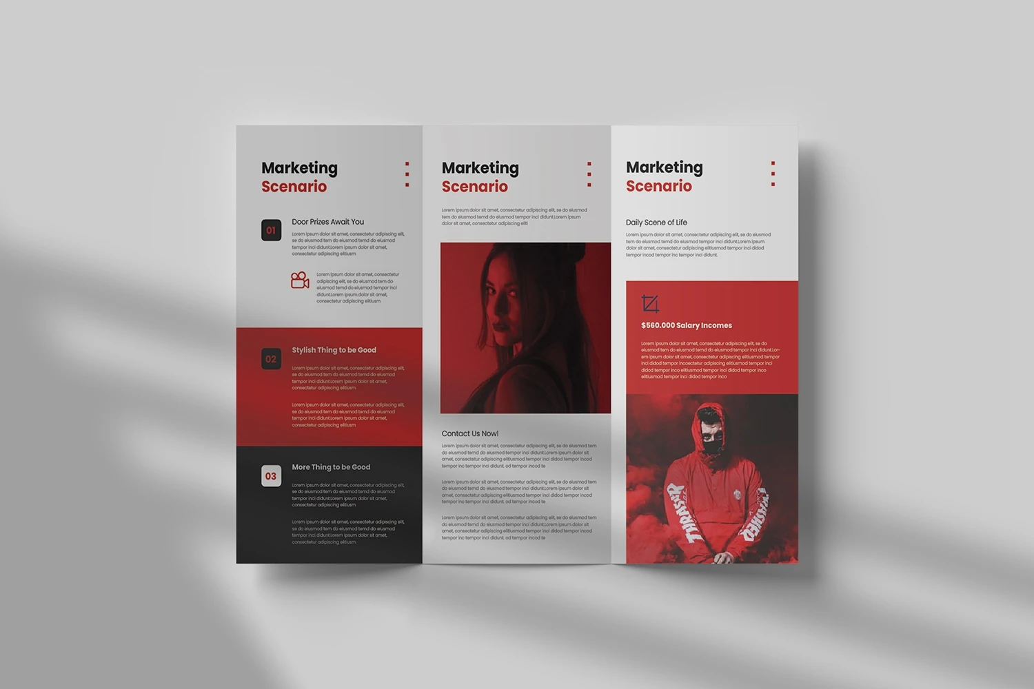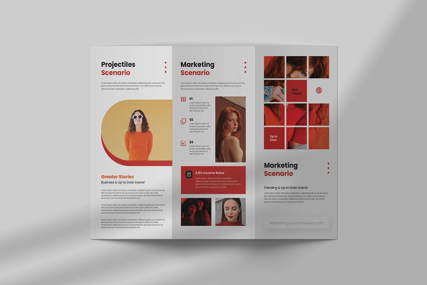 Marketing Scenario - Trifold Brochure We present this Trifold Brochure for you, simple, very elegant and professional and this Trifold Brochure is suitable for all types of your business,company or corporate, made with Adobe InDesign (INDD), Adobe Photoshop (PSD) and Adobe Illustrator (AI), very easy to customize, Hope you Like it dont forget to rate, Thanks You.