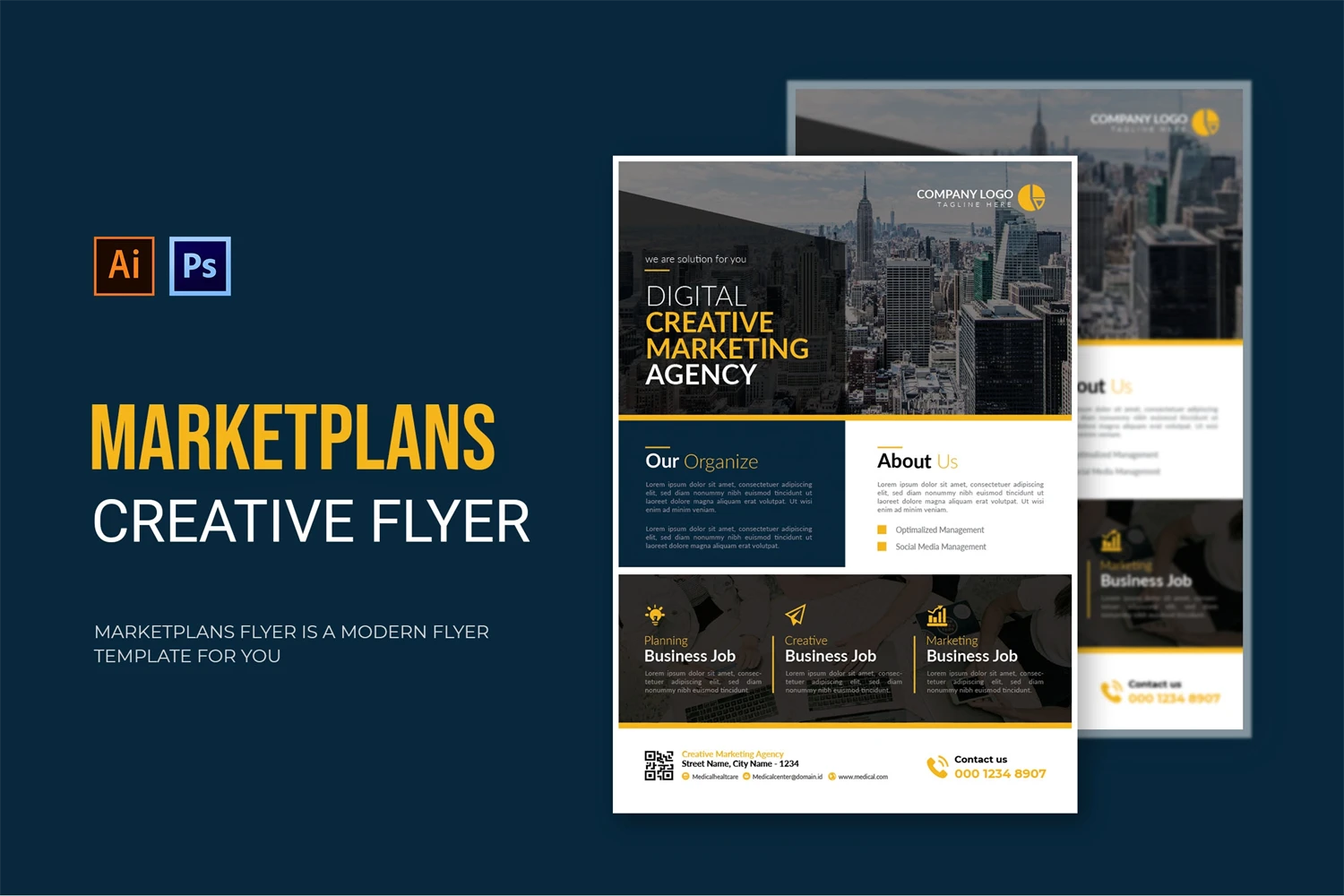 Marketplans - Flyer. This Flyer template is designed for your company's business needs. very clean and elegant, and also easily edited and adjusted to your liking