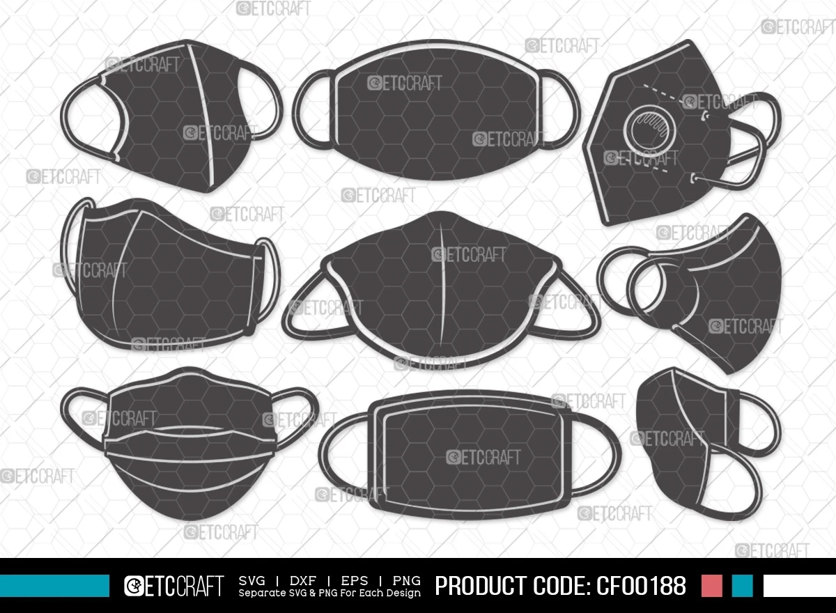 Upgrade your design projects and safety awareness campaigns with our Masks Silhouette Medical-Surgical Face Mask Quarantine Icon SVG Cut File Bundle. These meticulously crafted silhouette designs offer a powerful visual impact and are ideal for a variety of applications.