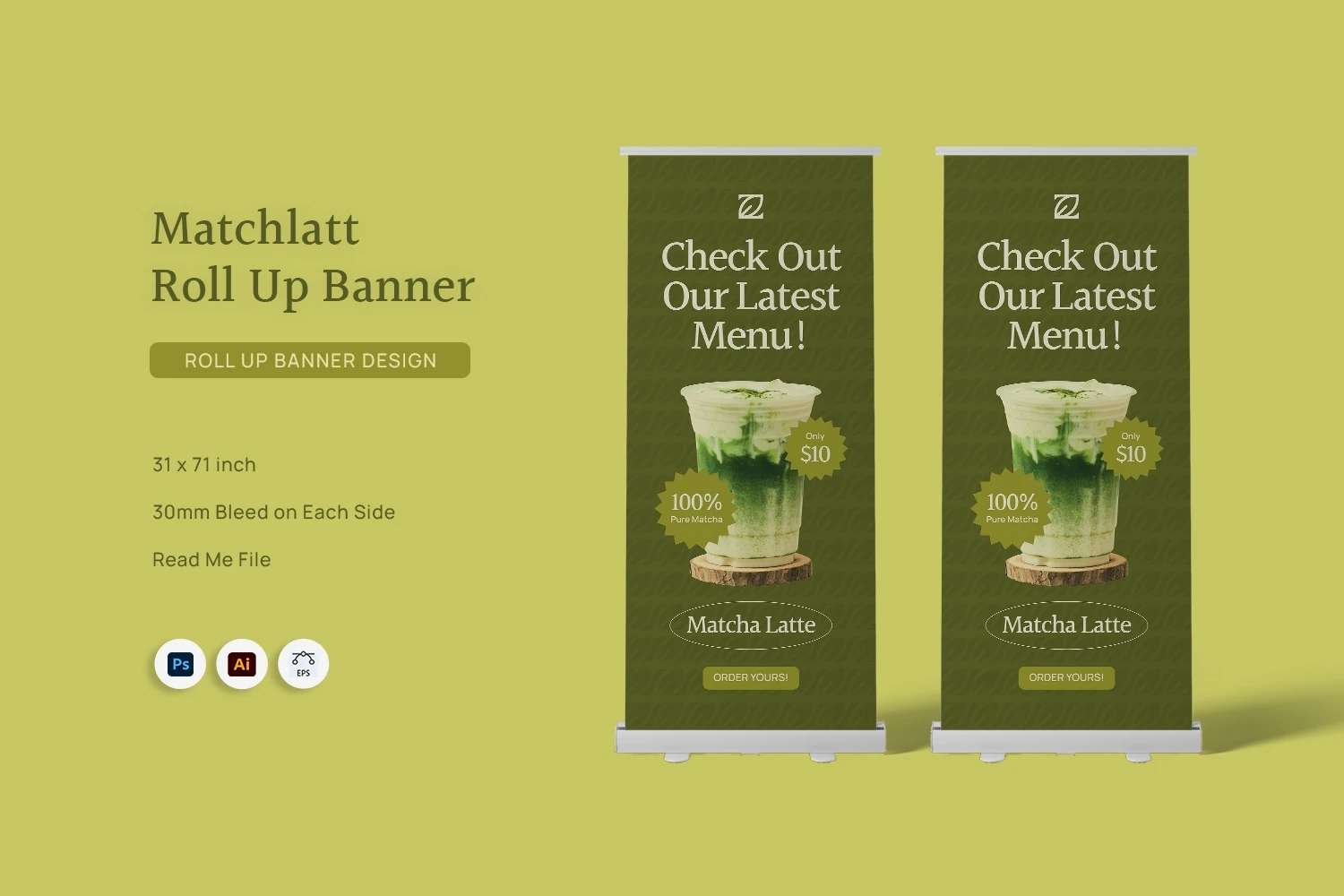 Make a statement with our attention-grabbing roll-up banner template. It's perfect for events and exhibitions, showcasing your brand or promotions. Customize with your own text and images for a personalized touch. Download now and make an impact at your next event!