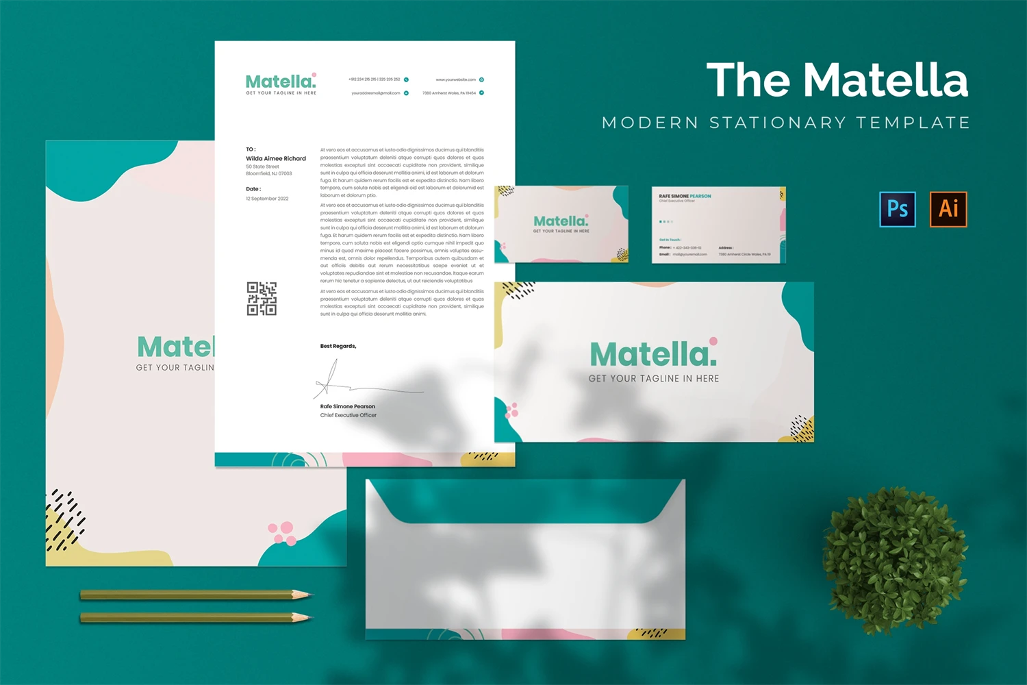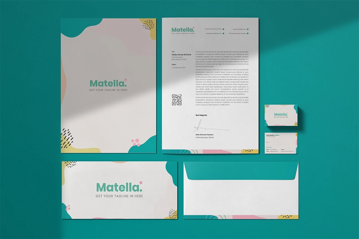 Matella - Stationary. This template is great for your business and this design will make your interested, elegant, and easily editable according to your needs. I hope you enjoy for this stationary.