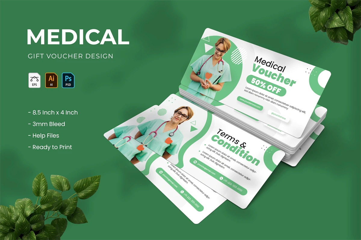 With this Gift Voucher Card, you can get the word out about your salon, spa, cosmetics store, health food store, pharmacy, hospital, boutique, fashion store, shopping mall, and more. This Gift Voucher Template is fully editable and customizable. You can add your product or service image and details of your offering very easily and quickly. Also, you have the option of changing colors and backgrounds. This gift template design will save you both time and money.