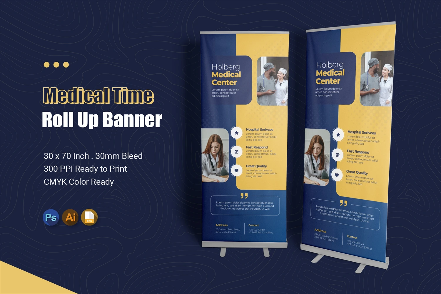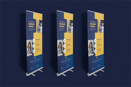The versatile roll up banner template is very easy to use, modify and customize. Use this roll up banner and make the most of your campaign!