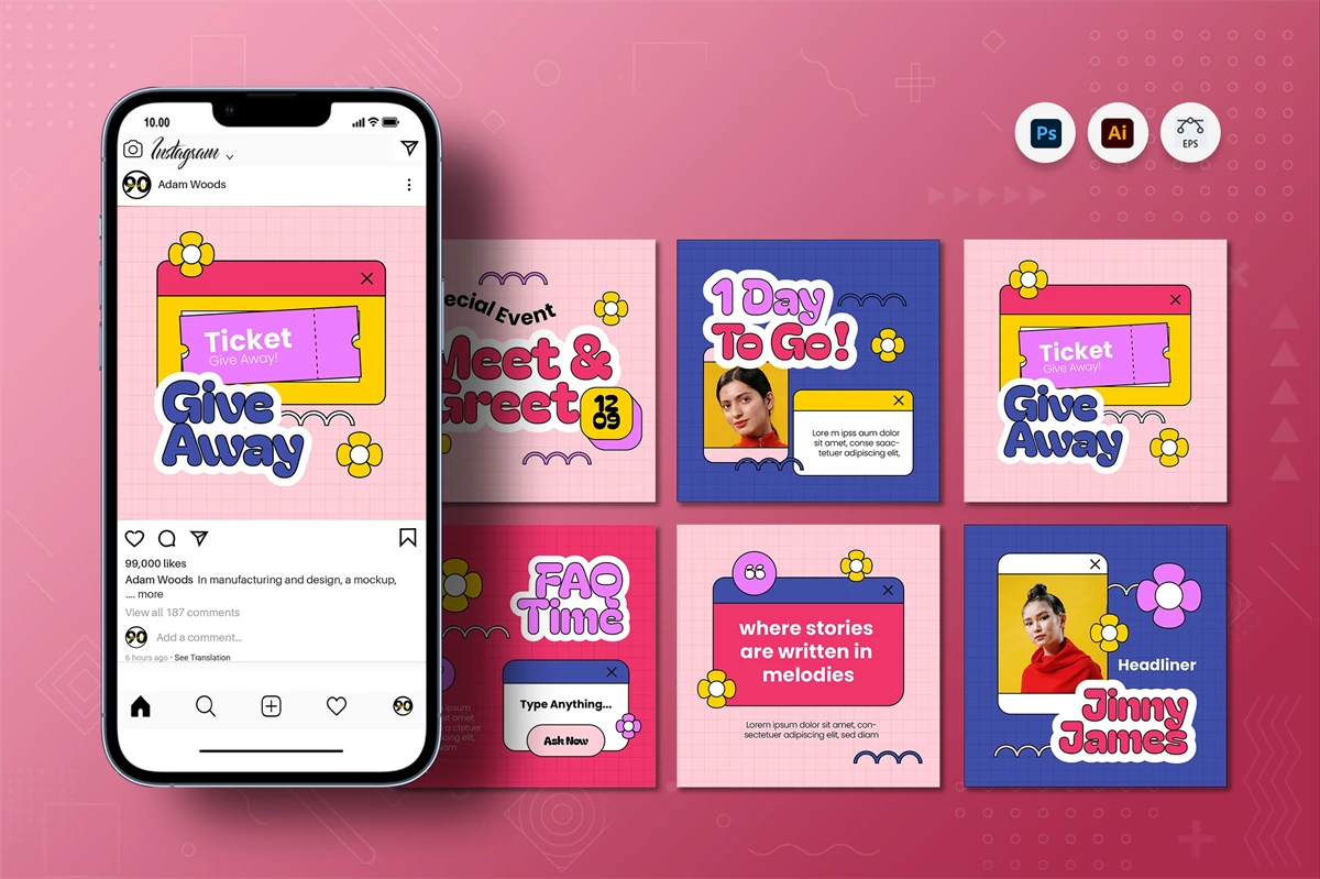 Give your Instagram Post account a design upgrade. This template is editable and customizable. This template is ideal for any instagram user who wants to have a good looking feeds.