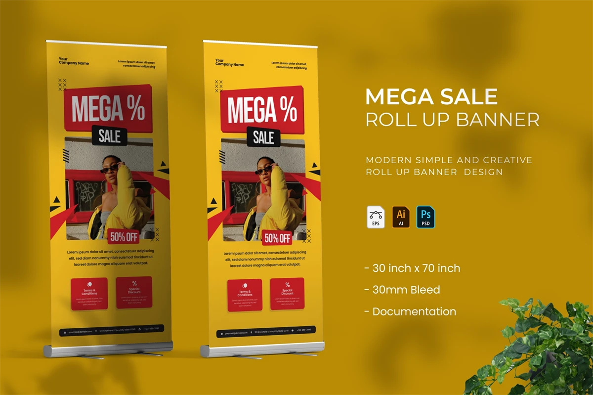 Roll-Up Banner Template: This is the best way to sell more furniture if you are selling it. With this beautiful roll-up banner, you can beat out your competitors and make your sales area look better. When you want to make an impression, its very important that your banner stand has the right design and information. Bring your project to the next level and see what can be done.