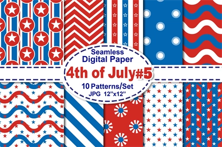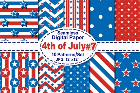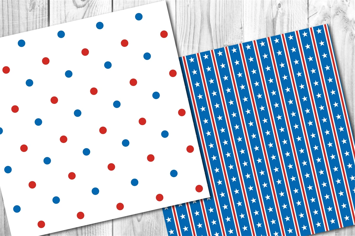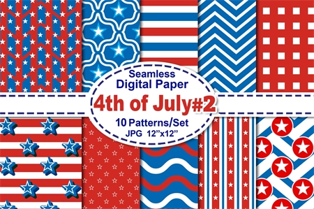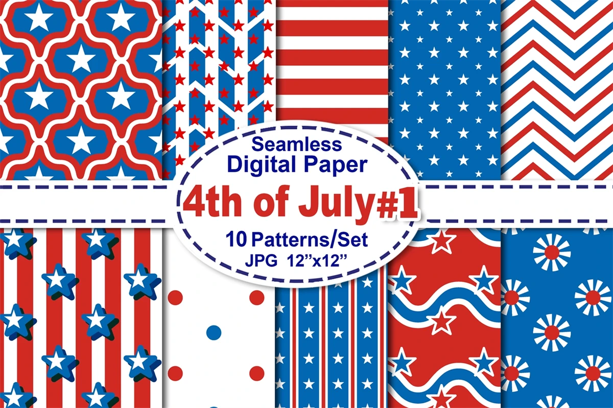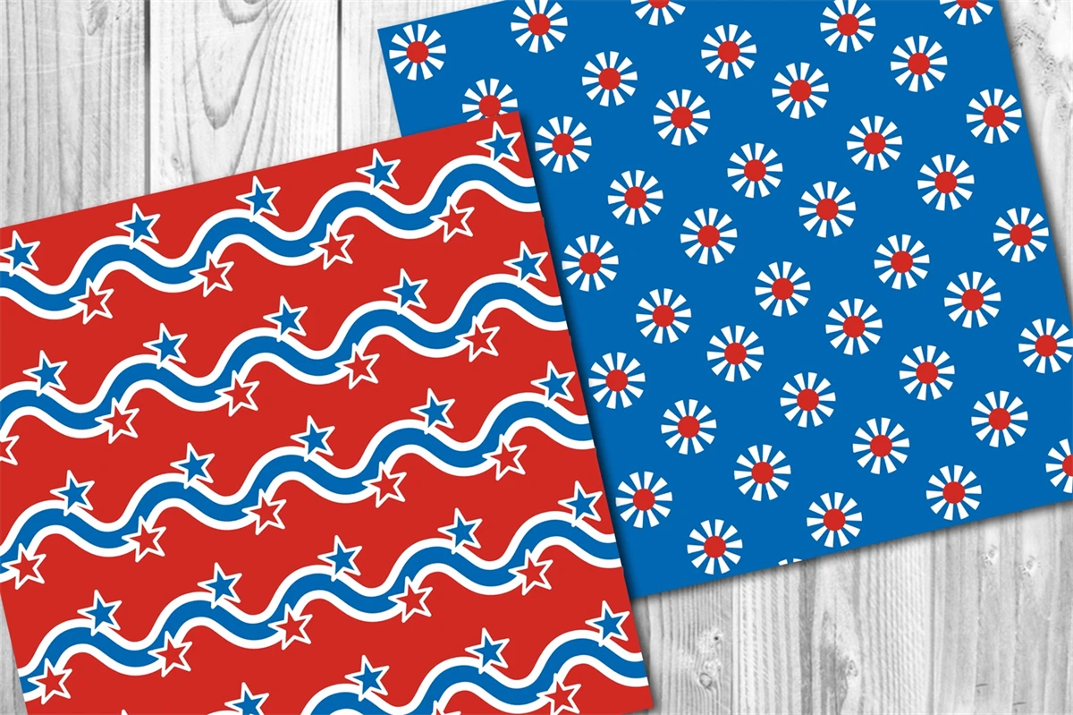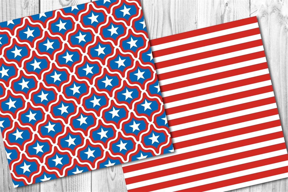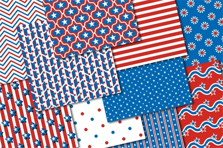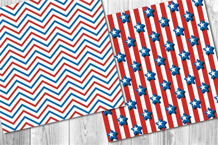 Memorial Day, Patriotic, Independence Day, 4th of July Digital Paper Set 1 - Stars & Stripes Red White and Royal Blue American Flag Theme Color Seamless Pattern Set